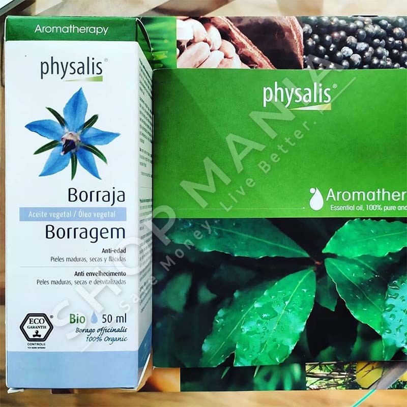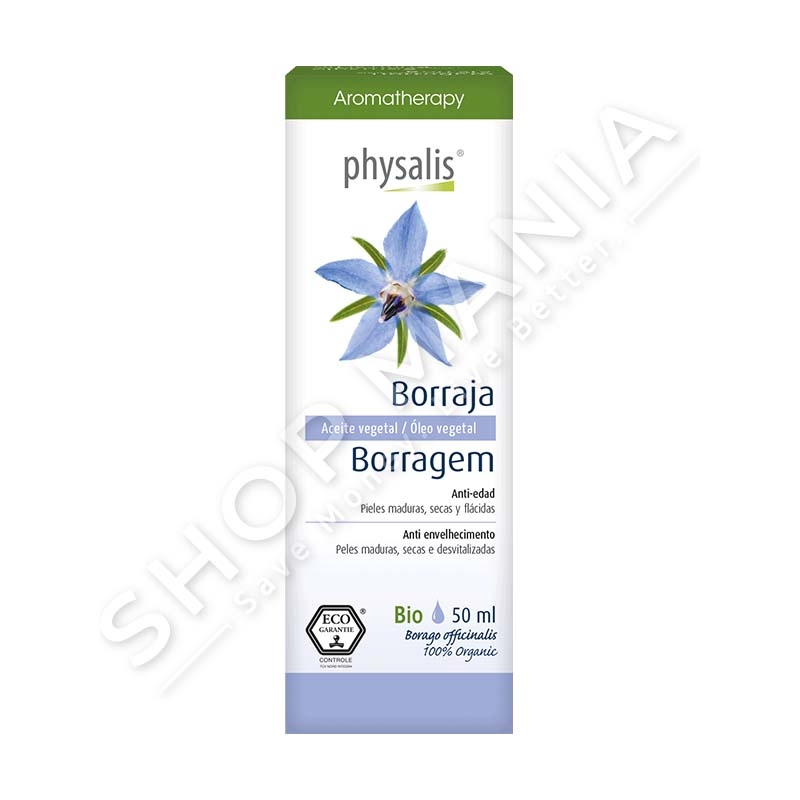 Vaji organik Borage nga Physalis, ka ngjyre te verdhe dhe formohet nga ekstraktimi i farave nga lulet blu te Borage. Eshte tejet i pasur me acid linolenik. I pershtatshem per lekura te thata qe i mungon elasticiteti. Keshtu vaji vepron si nje serum kunder plakjes, duke rigjeneruar dhe ushqyer qelizat. Specifika: