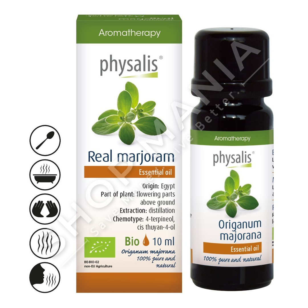 "Physalis Real marjoram Origanum majorana" eshte nje vaj esencial i paperpunuar kimikisht, i pa modifikuar dhe Bio 100%.
