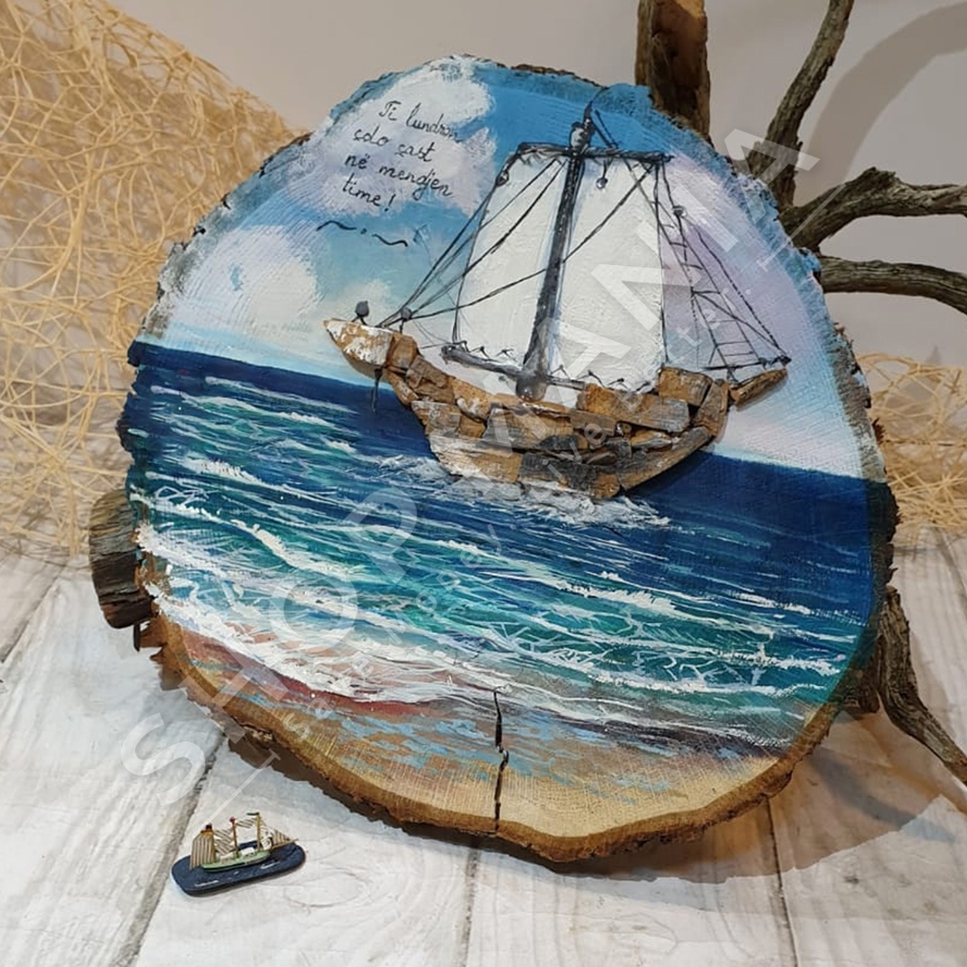 "Dua lundrimin" eshte nje pikture e realizuar ne dru dhe ne te jane perdorur copa druri per ndertimin e anijeve 2D.