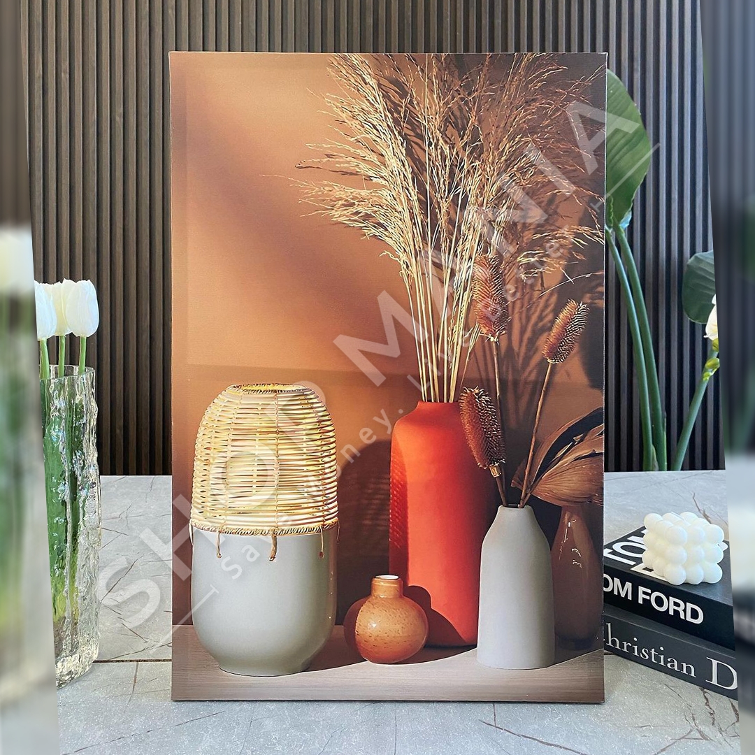 Pershkrimi:Modernizoni ambientin tuaj!Pikture e printuar ne kanavace, me vazo te ndryshme dhe lule te thata. Material i papershkueshem nga ujii dhe me ngjyre te gjalle qe nuk zbehet.Piktura ka permasat: 40 x 60 cm.