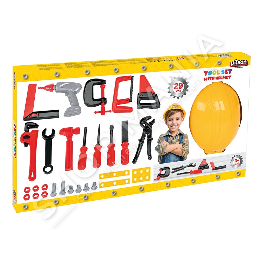 Kuti me vegla dhe aksesore ndertimi per te vegjlit tuaj "Pilsan Tool Set with Helmet".