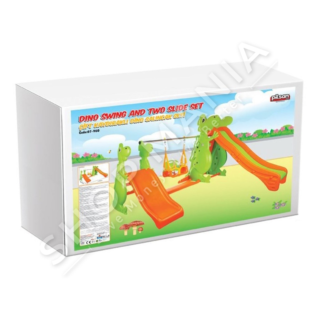 Argetim pafund per te vegjlit tuaj me setin e lodrave lisharese me dy rreshqitese Pilsan Big Dino Activity Center With 2 Slides And A Swing.