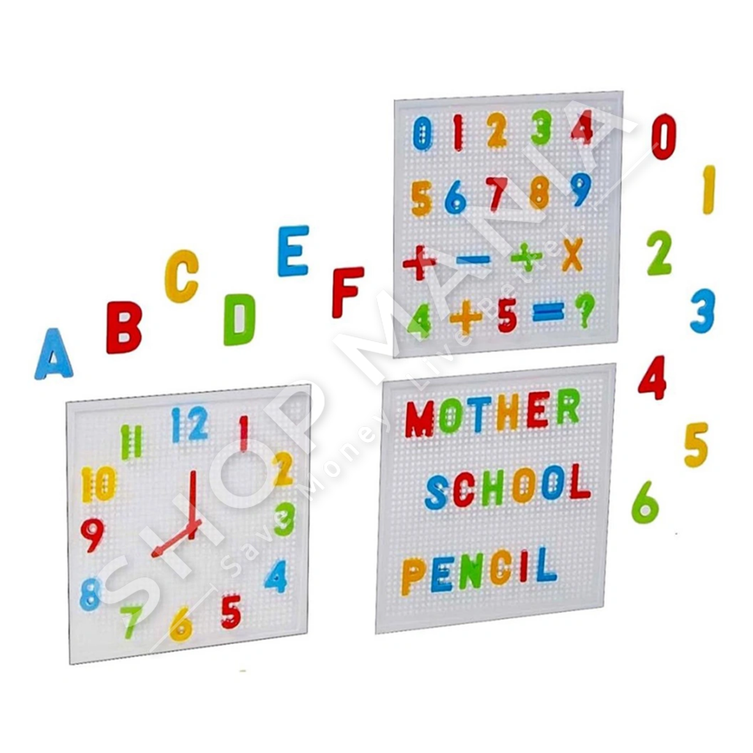 Seti permban 222 pjese (shkronja dhe numra), me te cilat femijet mund te luajne lojera te ndryshme si: krijimi i fjaleve te ndryshme, formimi i ores, krijimi i barazimeve numerike matematikore etj.