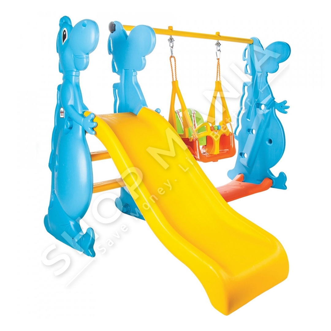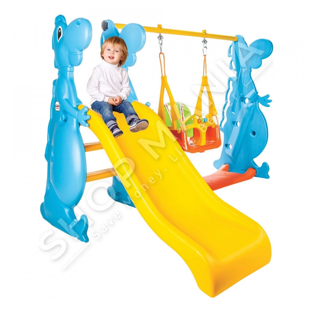 Argetim pafund per te vegjlit tuaj me setin e lodrave rreshqitese dhe lisharese Pilsan Dino Slide and Swing Set.