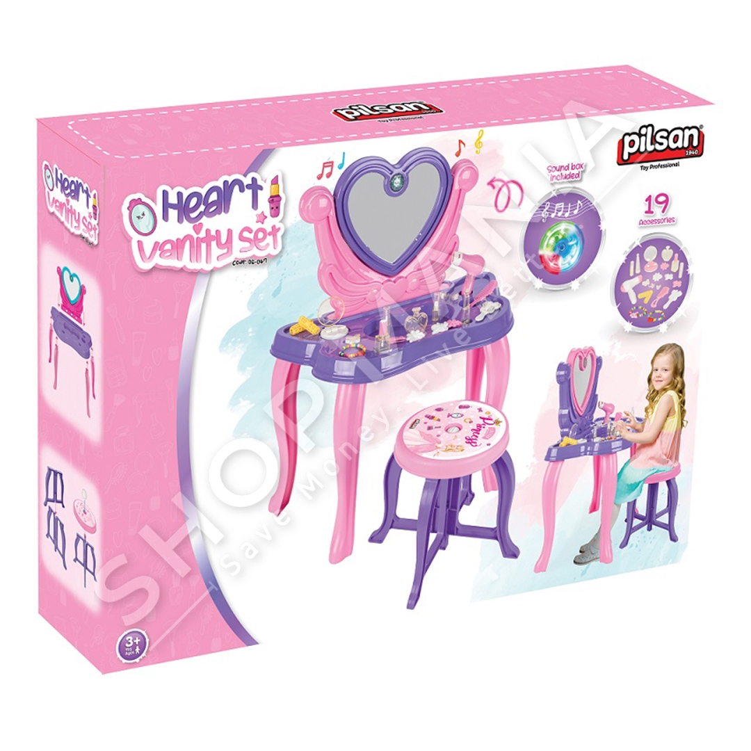 Set tavoline Make-Up "Pilsan Heart Makeup Table Pink" e shkelqyer per te gjitha vogelushet qe ju pelqejne te merren me veten.