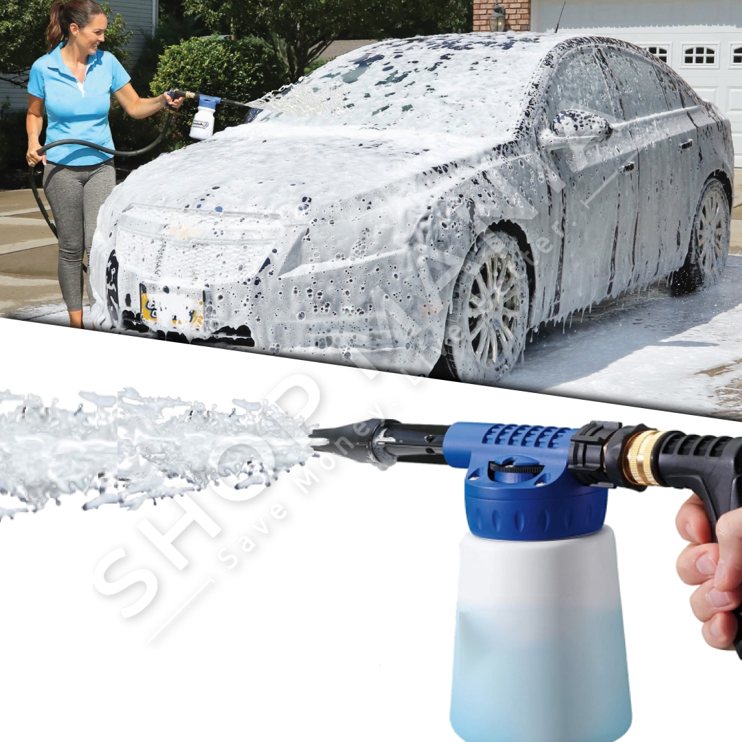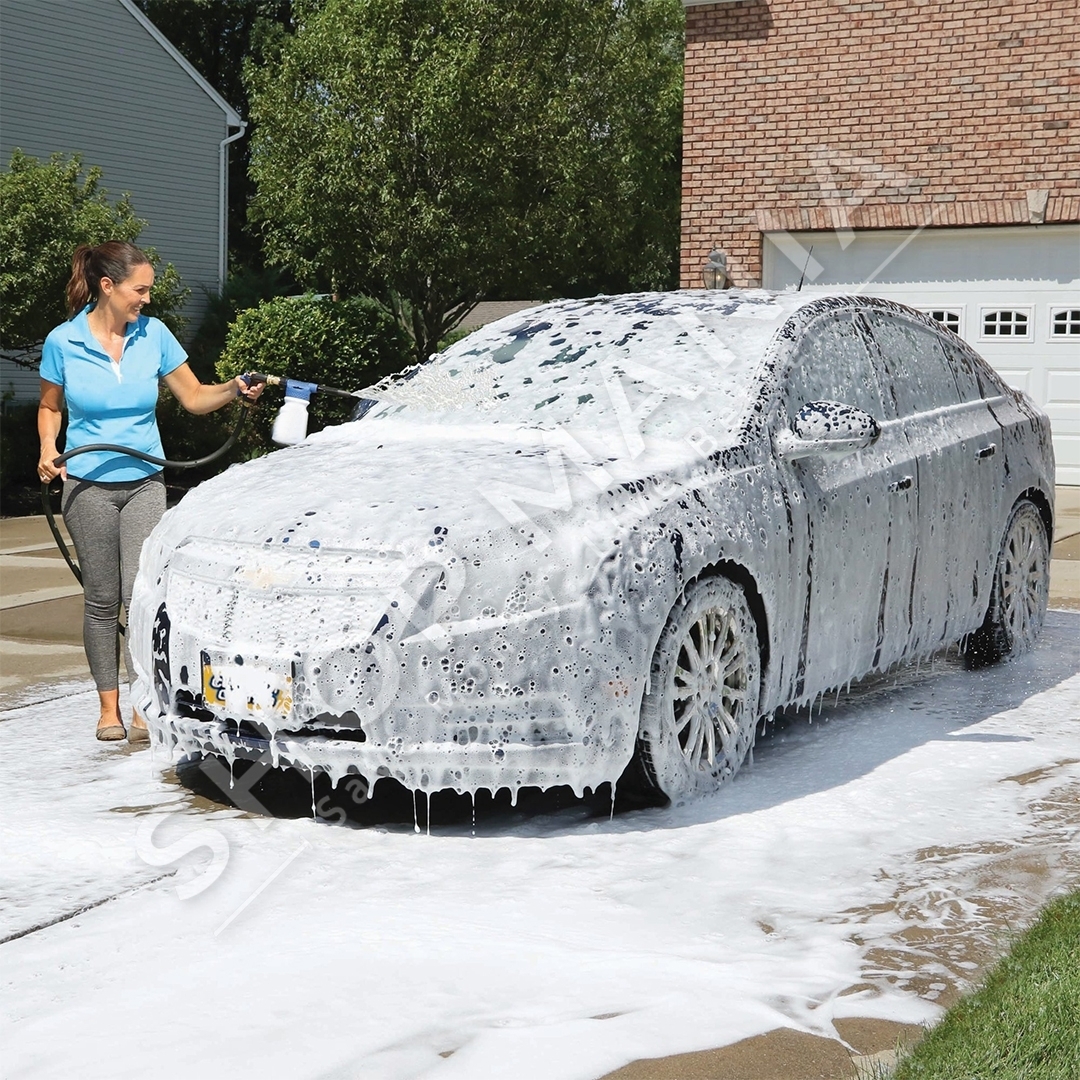Thjesht lidheni Carwash Cannon™ ne pothuajse cdo zorre kopshti, shtoni sapun te lengshem per larjen e makinave dhe sperkatni makinen tuaj me shkumen e trashe.