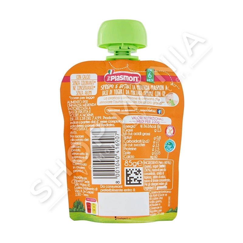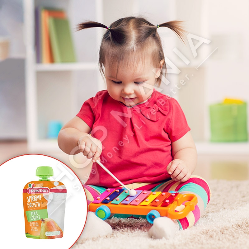 Pureja e holle me yogurt dhe dardhe nga Plasmon, eshte te pershtatshme per cdo rast, ne cdo moment te dites.