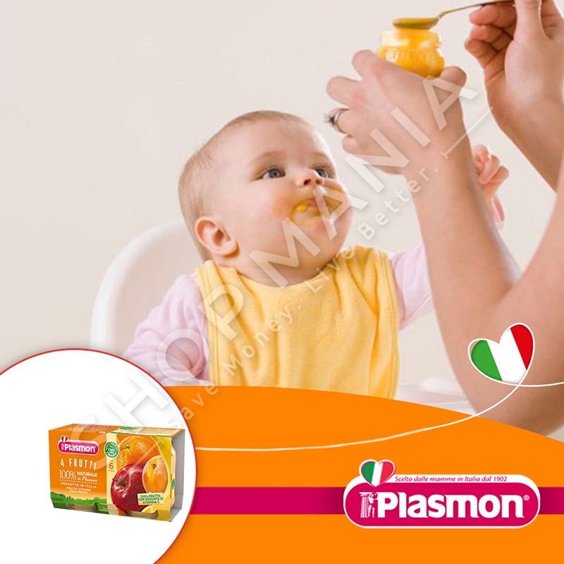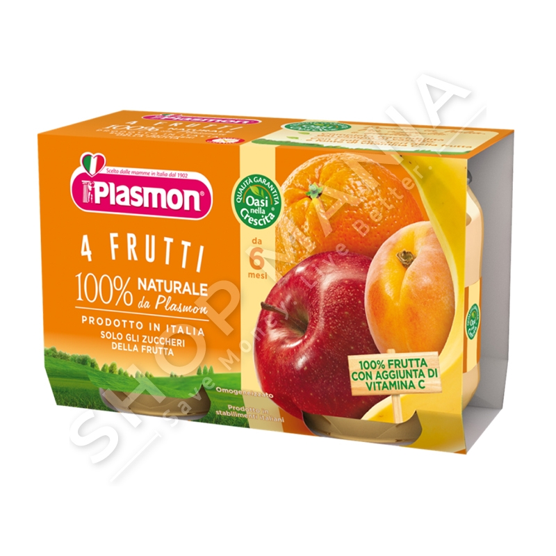 Plasmon i di shqetesimet tuaja dhe ka sjelle per ju purene me 4 fruta (banane, kajsi, molle dhe portokall) ne menyre qe femija juaj te marre te gjitha vlerat qe i duhen nga nje kavanoz i vetem.