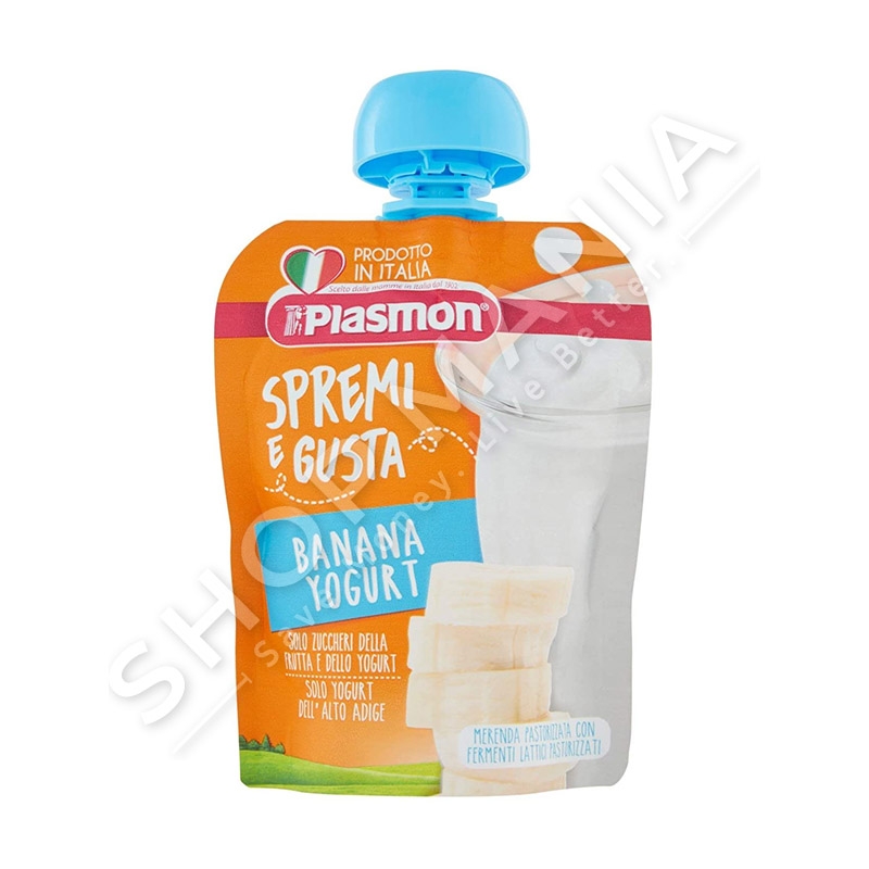 Pureja e holle me banane dhe kos nga Plasmon, eshte te pershtatshme per cdo rast, ne cdo moment te dites.