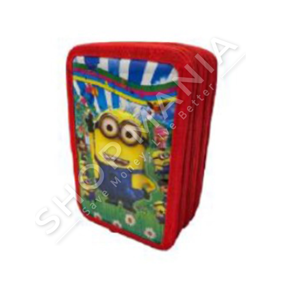 Portofol shkolle ne ngjyre te kuqe me dizajn te personazheve te filmit Minions.