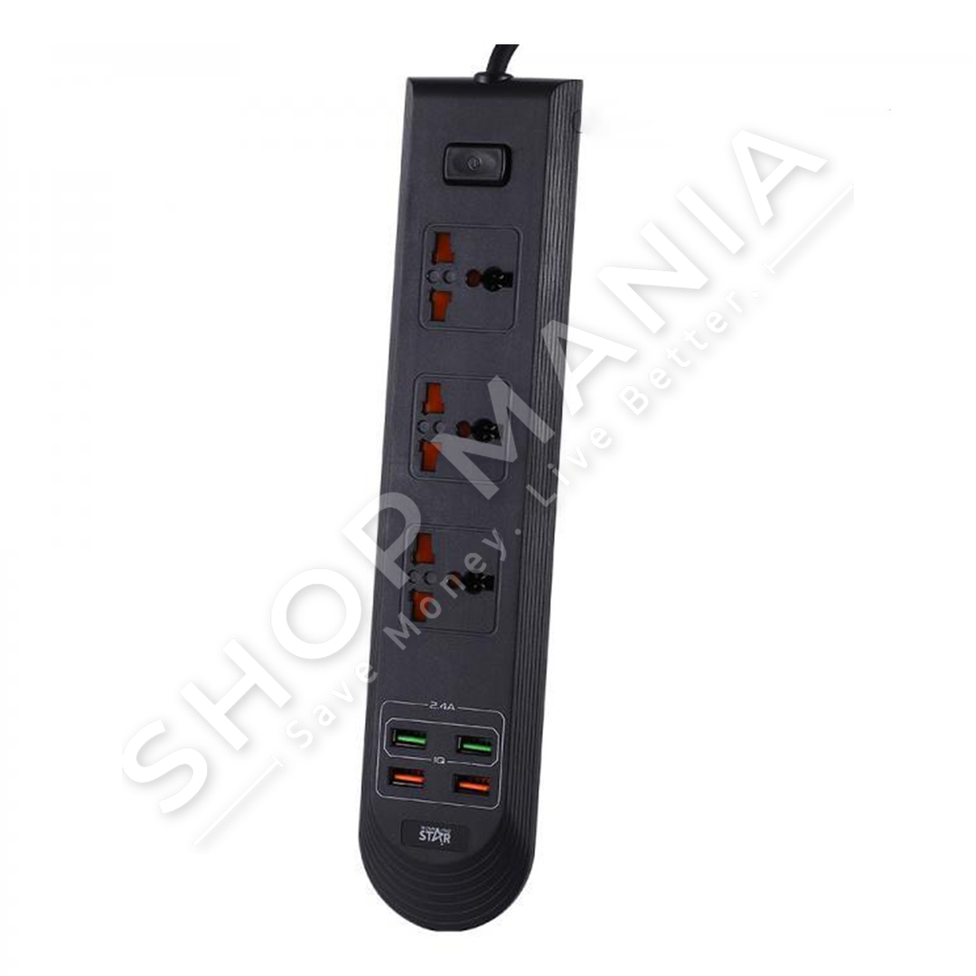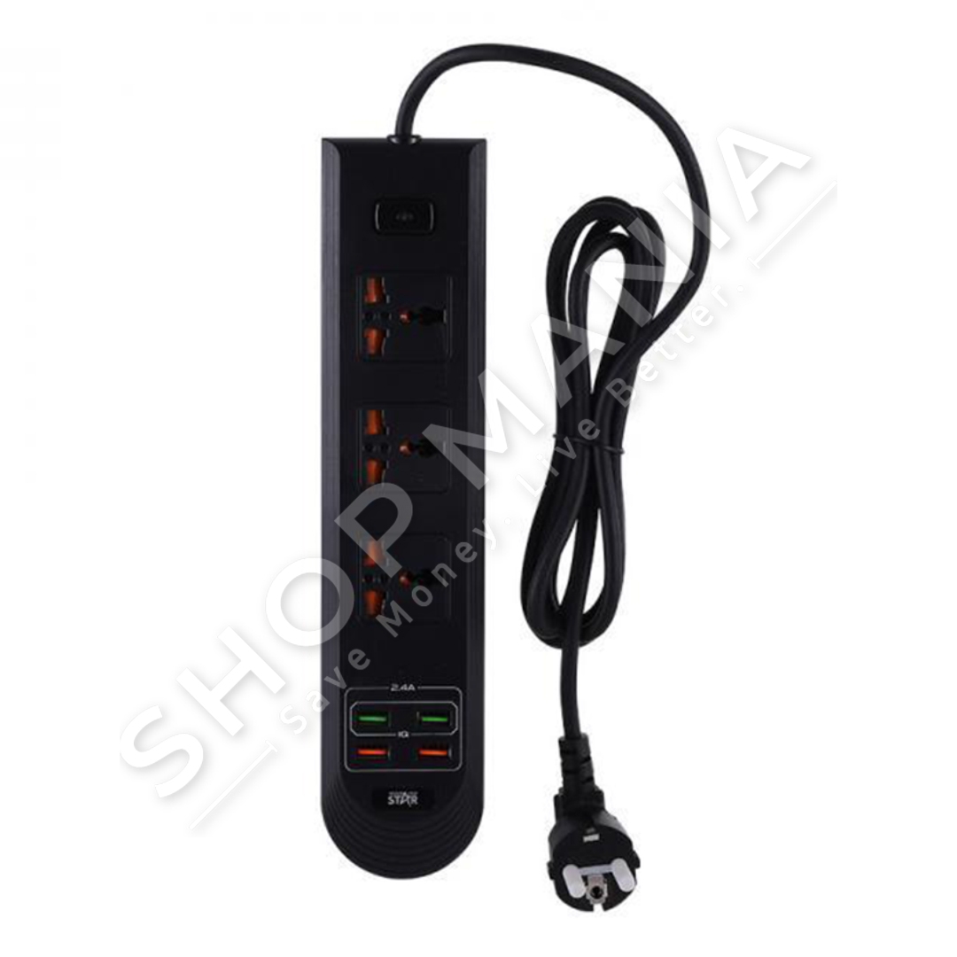 Prize elektrike me 3 porta universale per ngarkimin e pajisjeve elektronike dhe 4 porta per fisha USB.