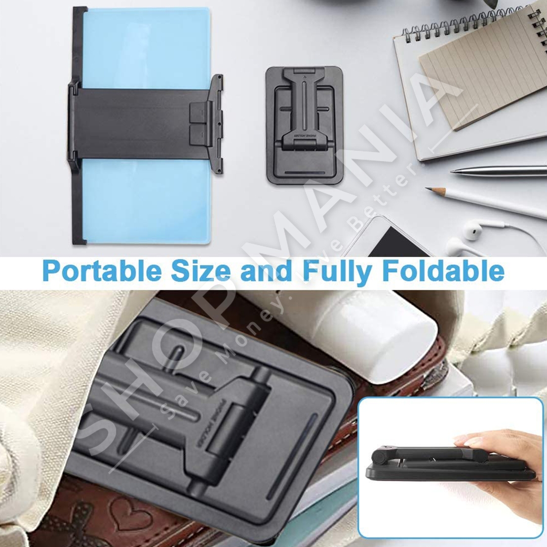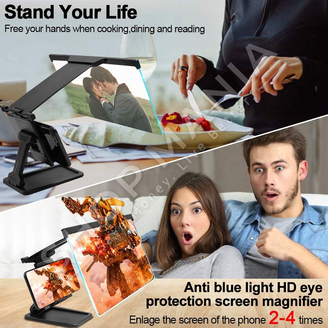 Projektori amplifikues per Smartphone eshte nje pajisje e domosdoshme per ju! Perdoret si mbajtes i telefonit dhe qendron vetem ose si perforcues i ekranit te telefonit. Mbajtesi i telefonit eshte plotesisht i palosshem dhe mund te hiqet dhe instalohet ne cdo kohe. Eshte i lehte per t'u perdorur dhe mund te merret me vete kudo qe jeni. Ka kend te rregullueshem nga 0° ne 120° dhe ekrani mund te zmadhohet 2-4 here. Projektori shfaq ekran HD 3D dhe imazh teper qetesues per syte, fale rrezeve blu qe jane mbrojtese per syte. Projektori pershtatet me cdo lloj telefoni dhe tableti, por gjithashtu dhe me Nintendo. Ka nje dizajn te thjeshte dhe elegant, dhe fale ekranit te zmadhuar qe ka te shplodh syte dhe te relakson.