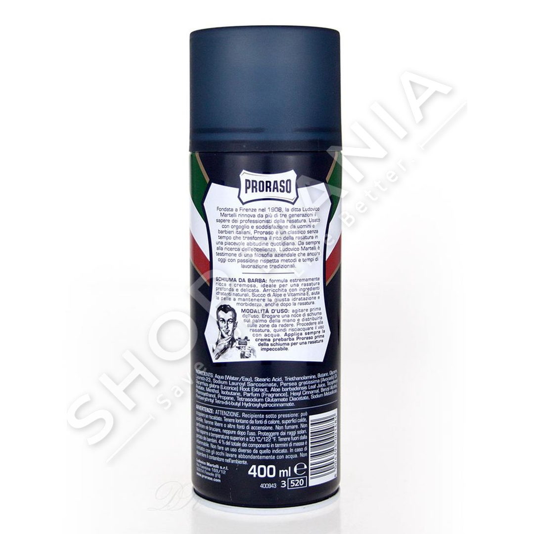 - Aqua (Water/Eau), Stearic Acid, Triethanolamine, Butane,Glycerin, Laureth23, Sodium Lauroyl Sarcosinate, Persea gratissima (Avocado) Oil, Glycyrrhiza glabra (Licorice) Root Extract, Aloe barbadensis Leaf Juice, Tocopheryl Acetate, Menthol, Isobutane, Parfum (Fragrance), Hexyl Cinnamal, Benzyl Alcohol, Phenoxyethanol, Propane, Tetrasodium Glutamate Diacetate, Sodium Metasilicate, Pentaerythrityl, Tetraditbutyl, Hydroxyhydrocinnamate