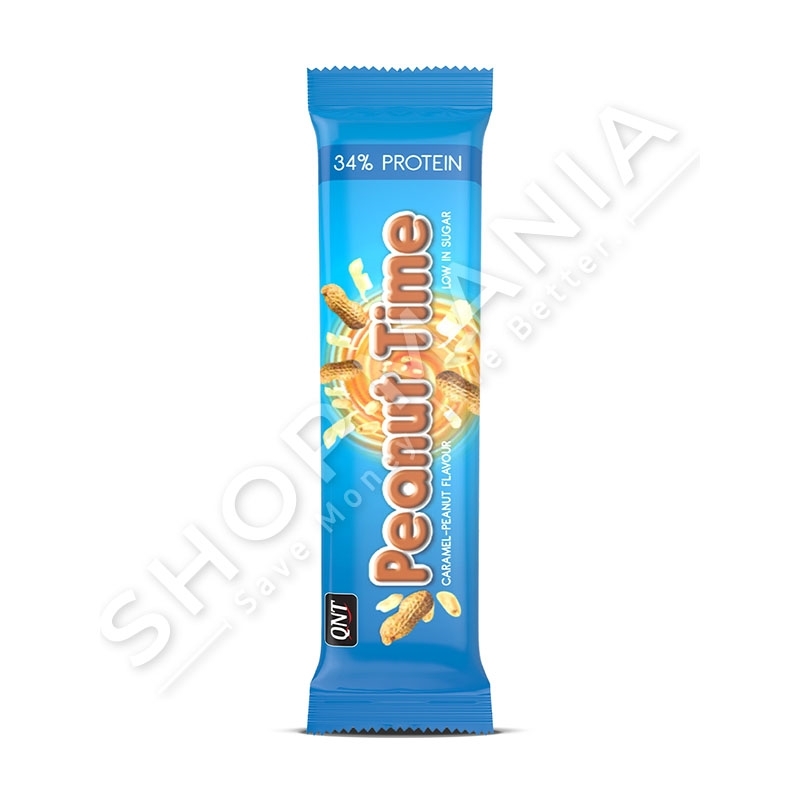 “PEANUT TIME BAR” eshte nje snack i lehte i balancuar, sepse permban 20g proteina cilesore (nga nje perzierje e burimeve te ndryshme te proteinave), 20g karbohidrate (por vetem 2.4g sheqer) dhe vetem 12g yndyrna te mira.