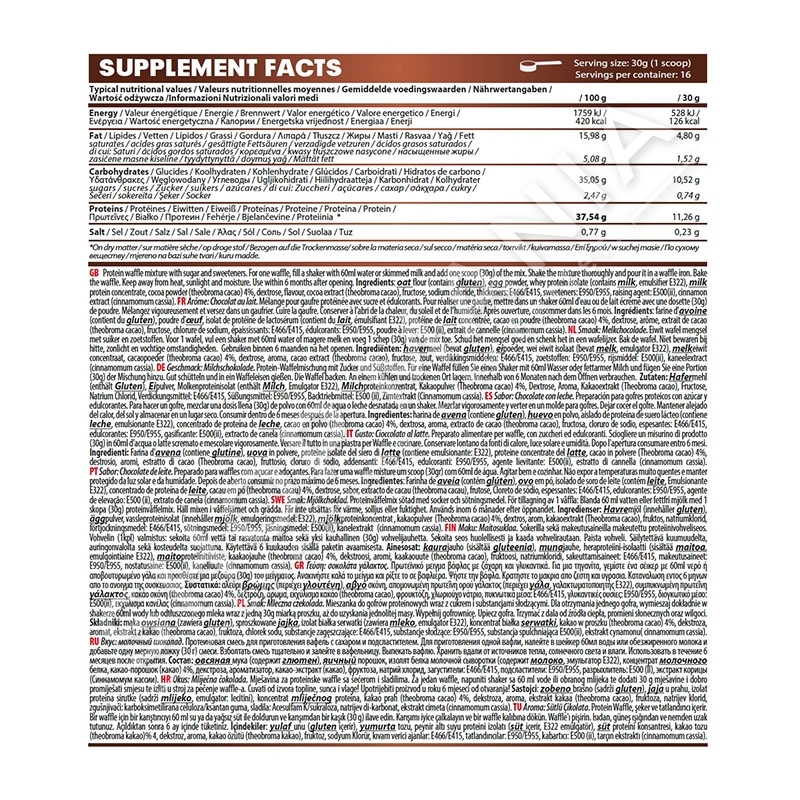 “Belgian Waffles Protein” me shije qumeshti cokollate, jane waffles me proteina me vleresim te larte, me sheqer dhe kalori te ulet.