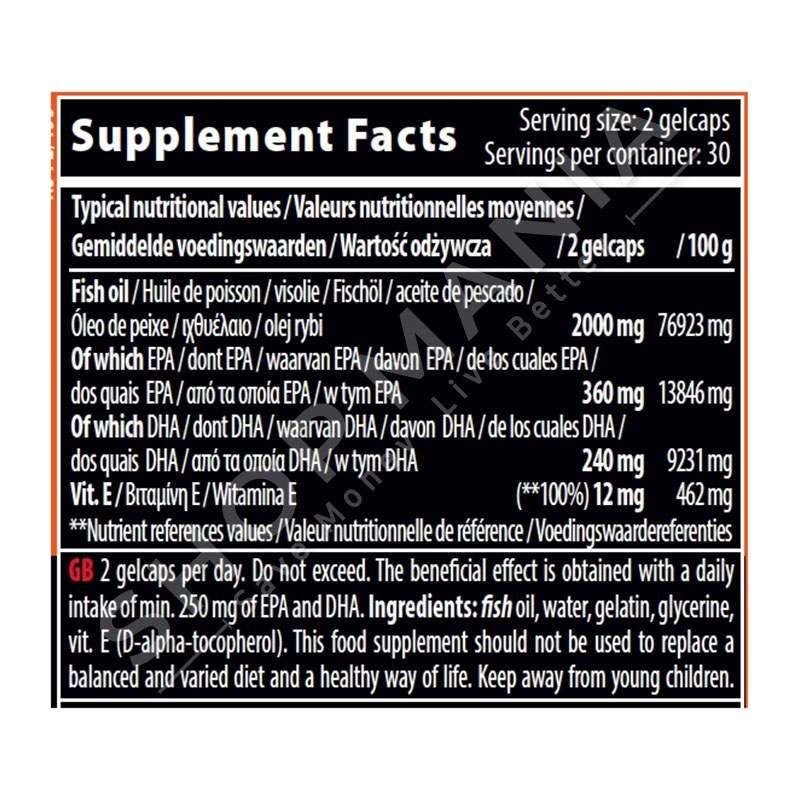 Vaj peshku Uje Xhelatine Glicerine Vitamin E (D-alfa-tokoferol)