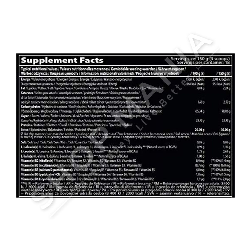QNT sjell per ju, “Massive Mass” me proteina hirre, tershere dhe BCAA (aminoacidet: L-Leucine, L-Izoleucine, L-Valine).Proteinat ndihmojne per te ndertuar dhe mbajtur masen muskulare.