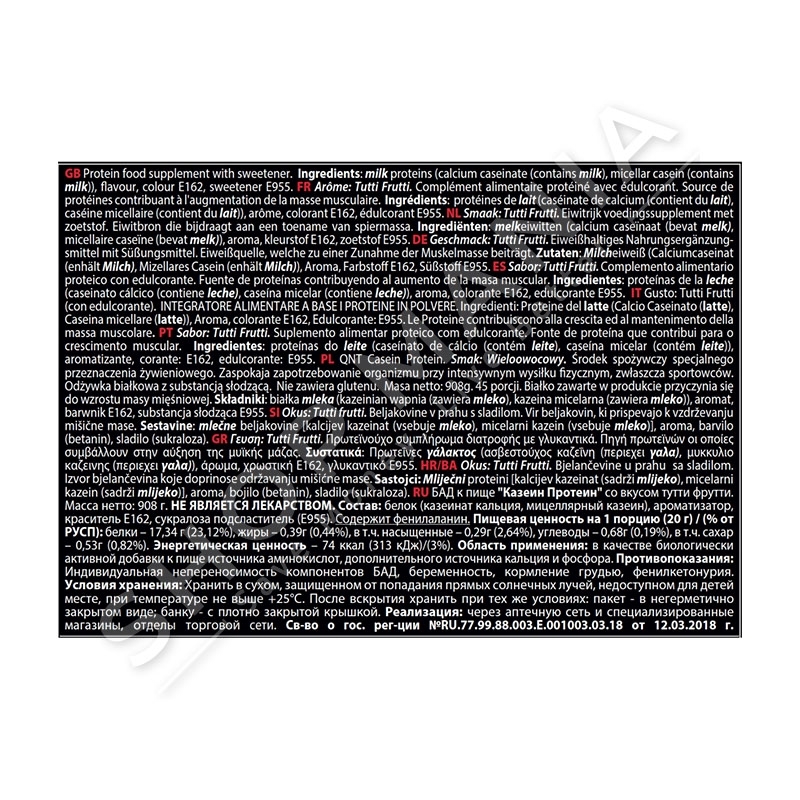 “CASEIN PROTEIN” me te gjitha frutat, eshte nje perzierje e kazeines micelare dhe kazeinatit te kalciumit.