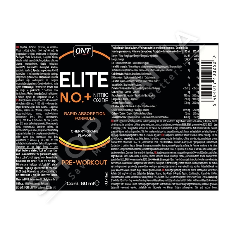 “Elite NO +” me shije qershie dhe rrushi, eshte nje suplement me zero sheqer, me fuqi te larte para stervitjes, i krijuar nga ekipi hulumtues QNT per te dhene rezultate.