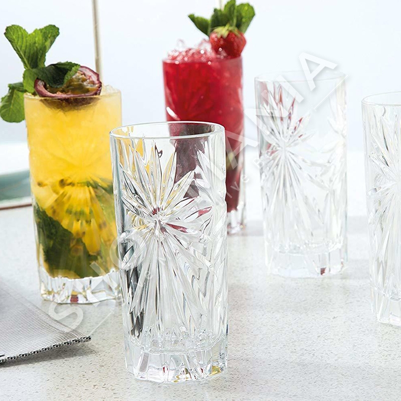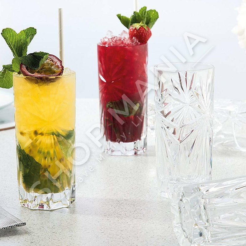 Përshkrimi:Set me gota te dekoruara e te gjata qelqi “Oasis”, me dekor te vecante dhe kapacitet 360 ML! Kesaj gote i pershtatet cdo pije. Eshte cilesore dhe praktike.