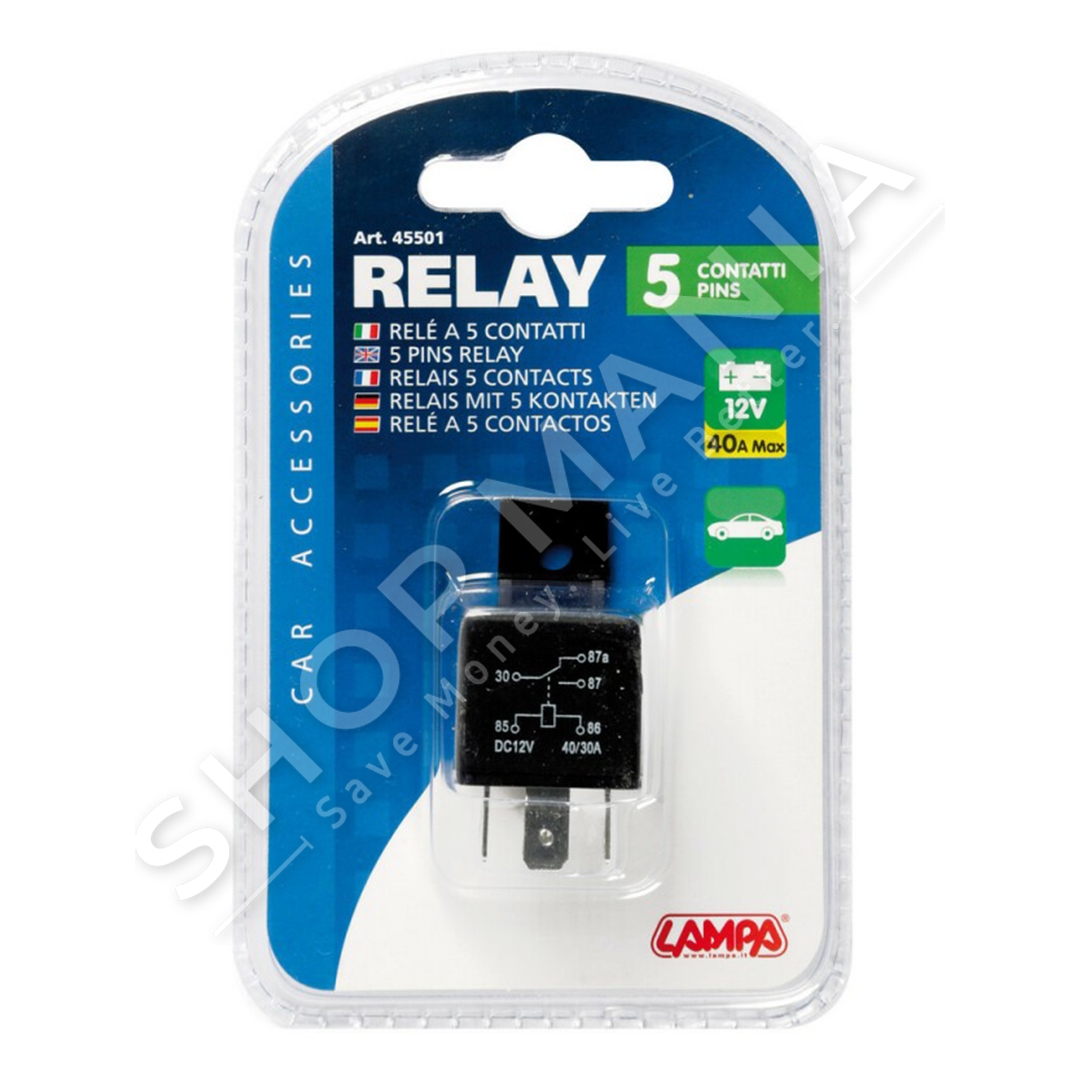 Rele me 5 kunja me tension 12 V. Relete lejojne qe nje qark i rrymes se ulet te kontrolloje nje ose me shume qarqe te rrymes me te larte. Jane ideale per te kontrolluar shume qarqe ne nje makine, si dritat, motoret elektrike, ngrohesi etj. Te releja me 5 kunja, 2 prej tyre (85 & 86) kontrollojne spiralen dhe 3 kunjat e tjera (30, 87 & 87A) kalojne fuqine midis dy qarqeve.