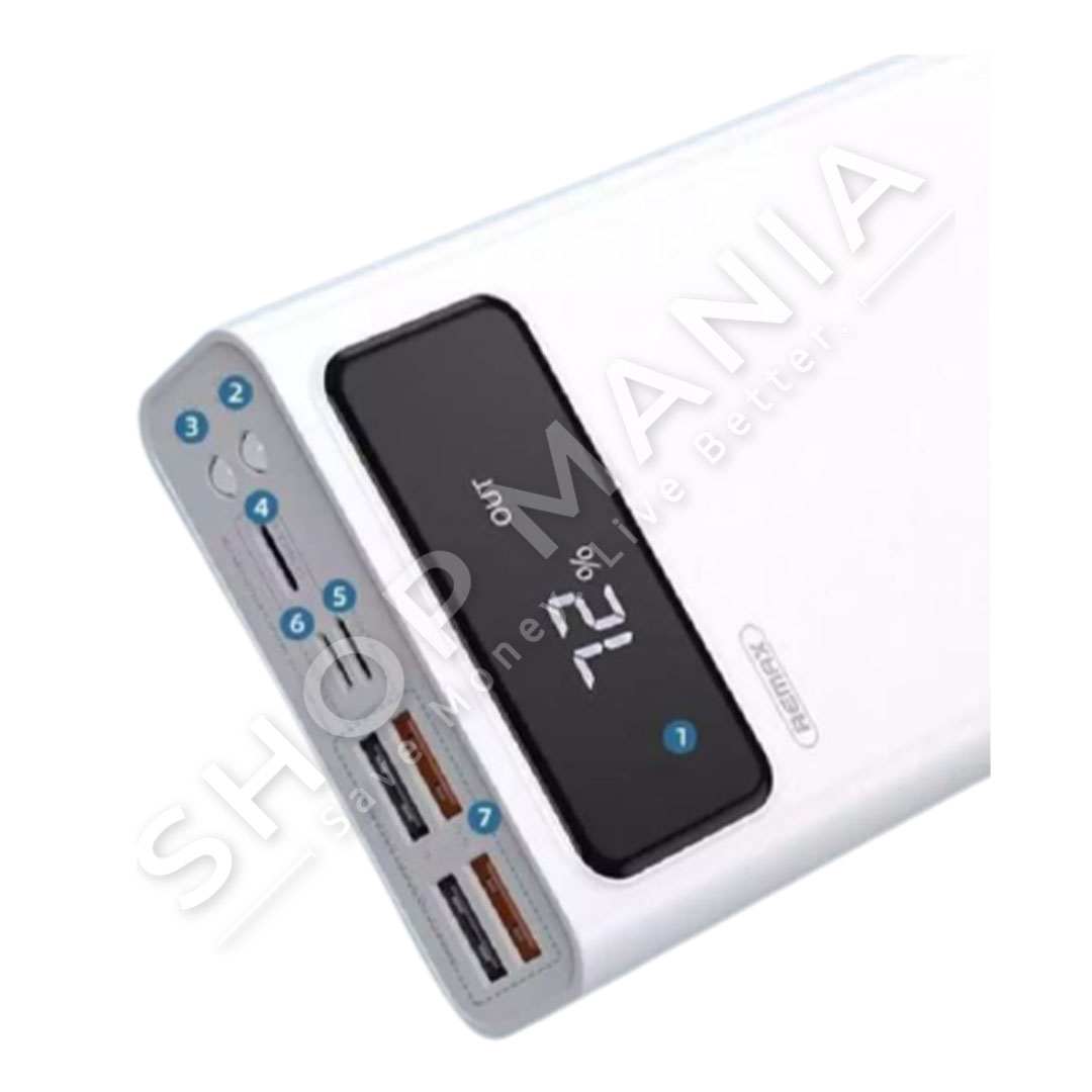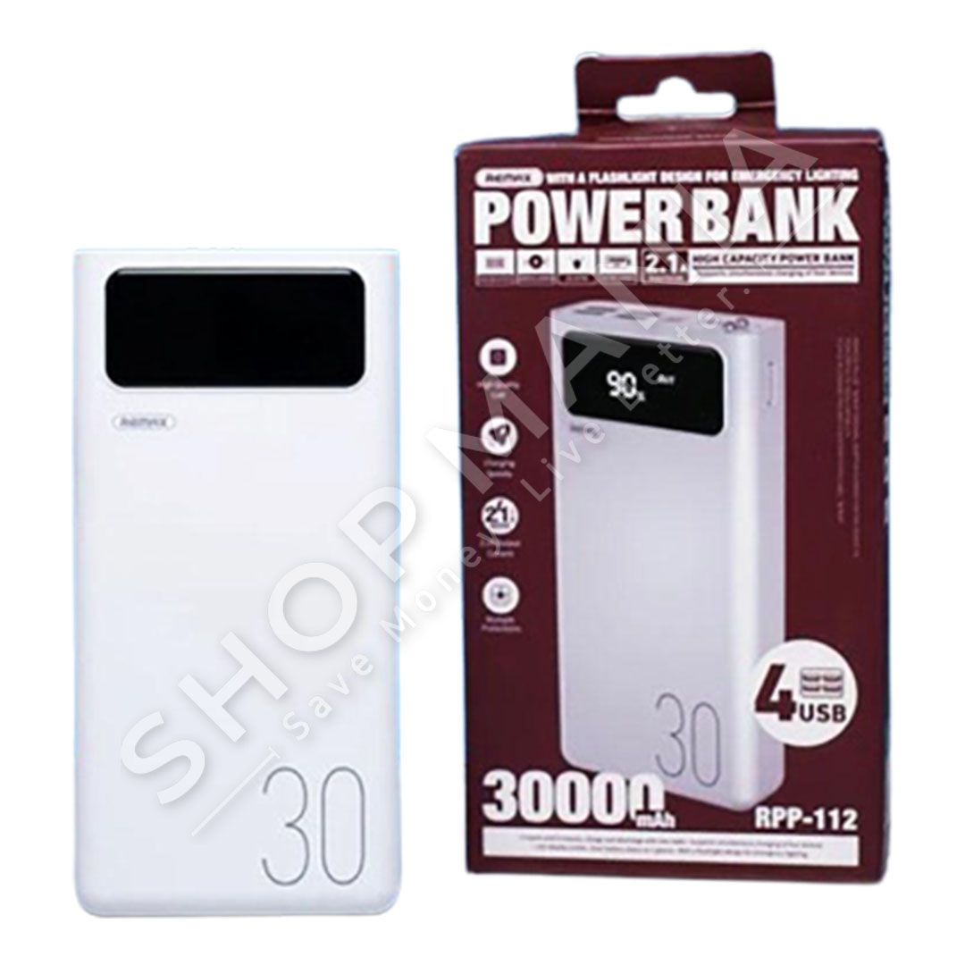 Power Bank Remax RPP-112 me ekran LED dhe me dizajn modern. Me 3 porta hyrjeje dhe 4 daljeje, Power Bank eshte ne gjendje te karikoje njekohesisht deri ne 4 pajisje. Sherben dhe si elektrik dore ne raste emergjence fale ndricimit LED qe ka ne pjesen e siperme.