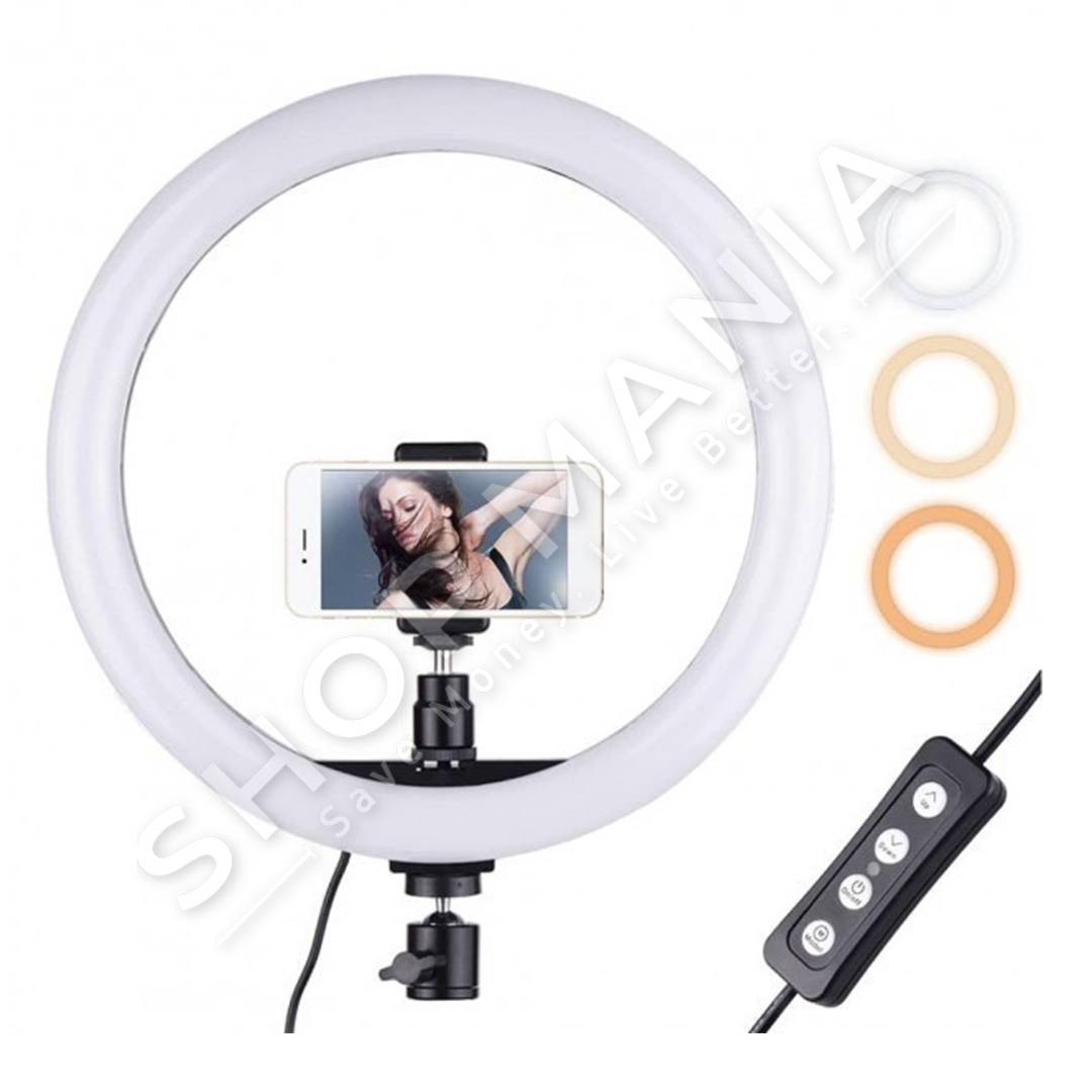 Ring Light LED eshte nje unaze me drite LED ne ngjyre te bardhe me diameter 33 cm. Ka nje drite te plote si dhe tre nivele ndricimi, te cilat mund t'i nderroni sipas deshires apo menyres se perdorimit. Drita ka nje kend rrotullimi prej 360 gradesh, ne menyre qe mund ta perdorni ne cilindo pozicion qe deshironi.