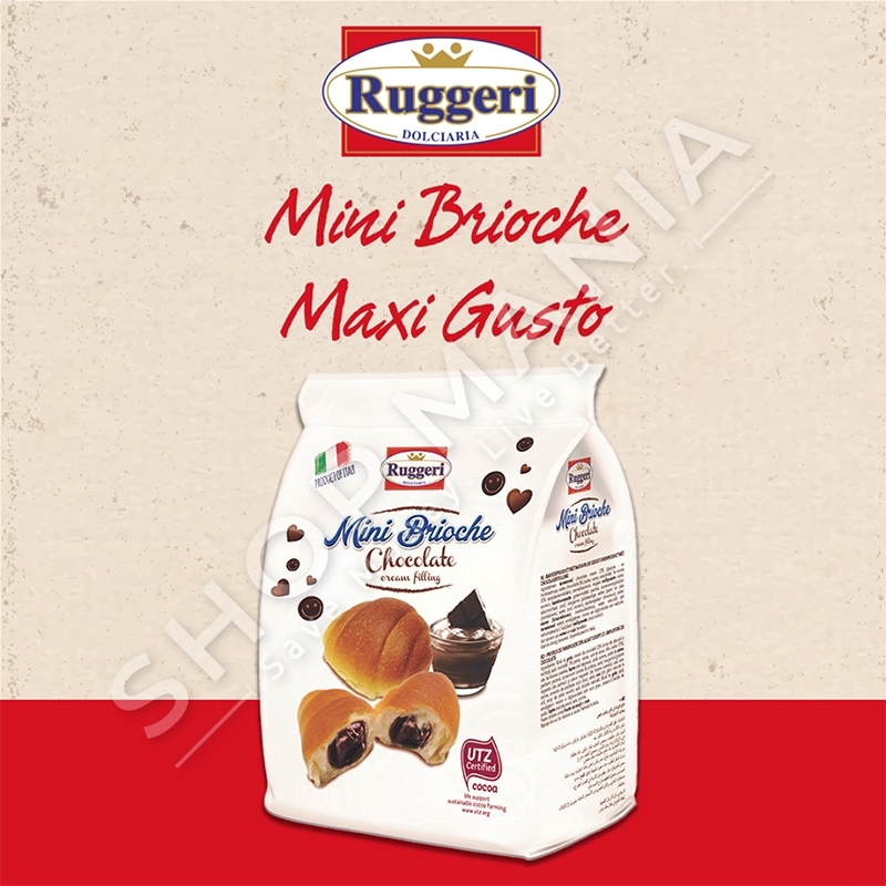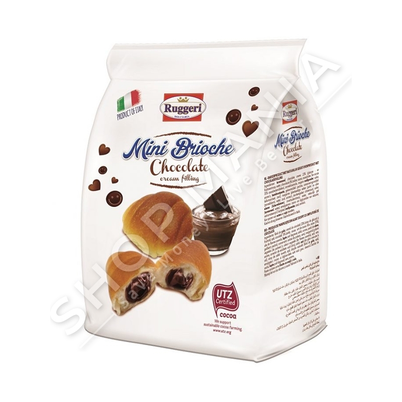Mini briosh te shijshem te mbushur me cokollate nga marka Ruggeri.Kane nje shije te kendshme dhe jane te bute.Mund t'i konsumoni ne cdo moment te dites, te pershtatshme per ne mengjes te shoqeruara me nje gote qumesht.Pesha: 150gr
