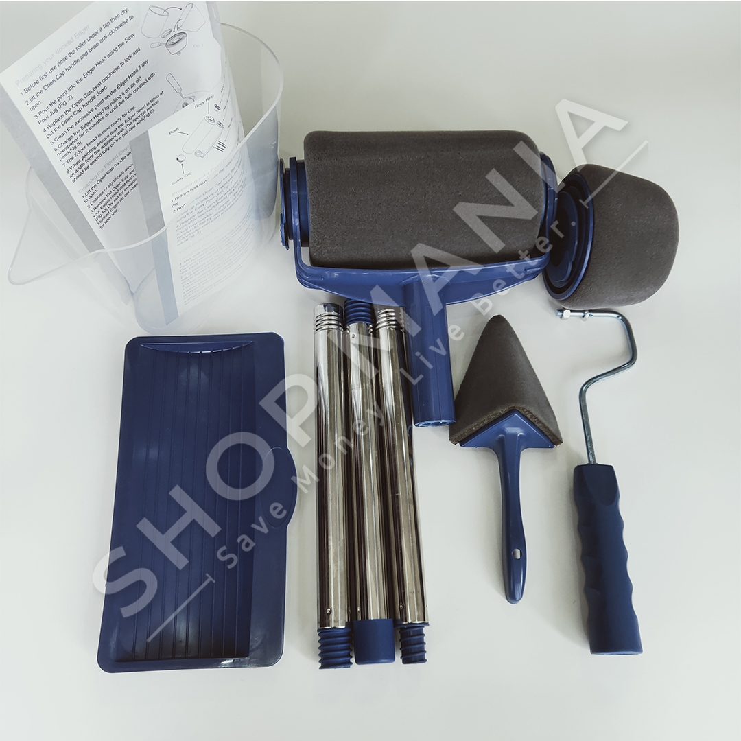 Vjen ne nje komplet prej 6 copesh qe perfshijne: rulin e bojes; fine flocked edger; tabakane qe vendoset ruli, preresin kendor, derdhes boje me rrjedhje te lehte dhe 3 shkopinj doreze zgjatuese.