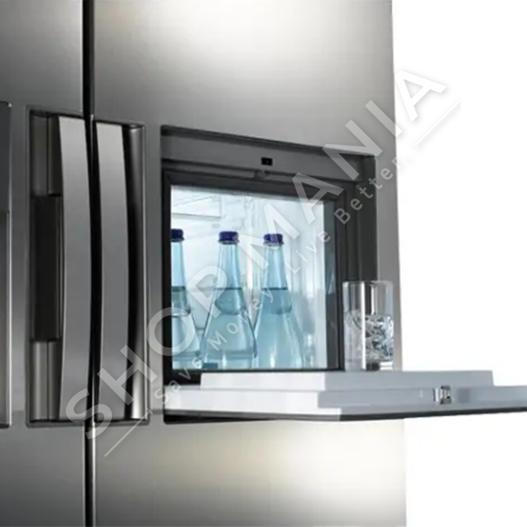 Me produktor akulli dhe dispenser uji te integruar ne deren e jashtme.