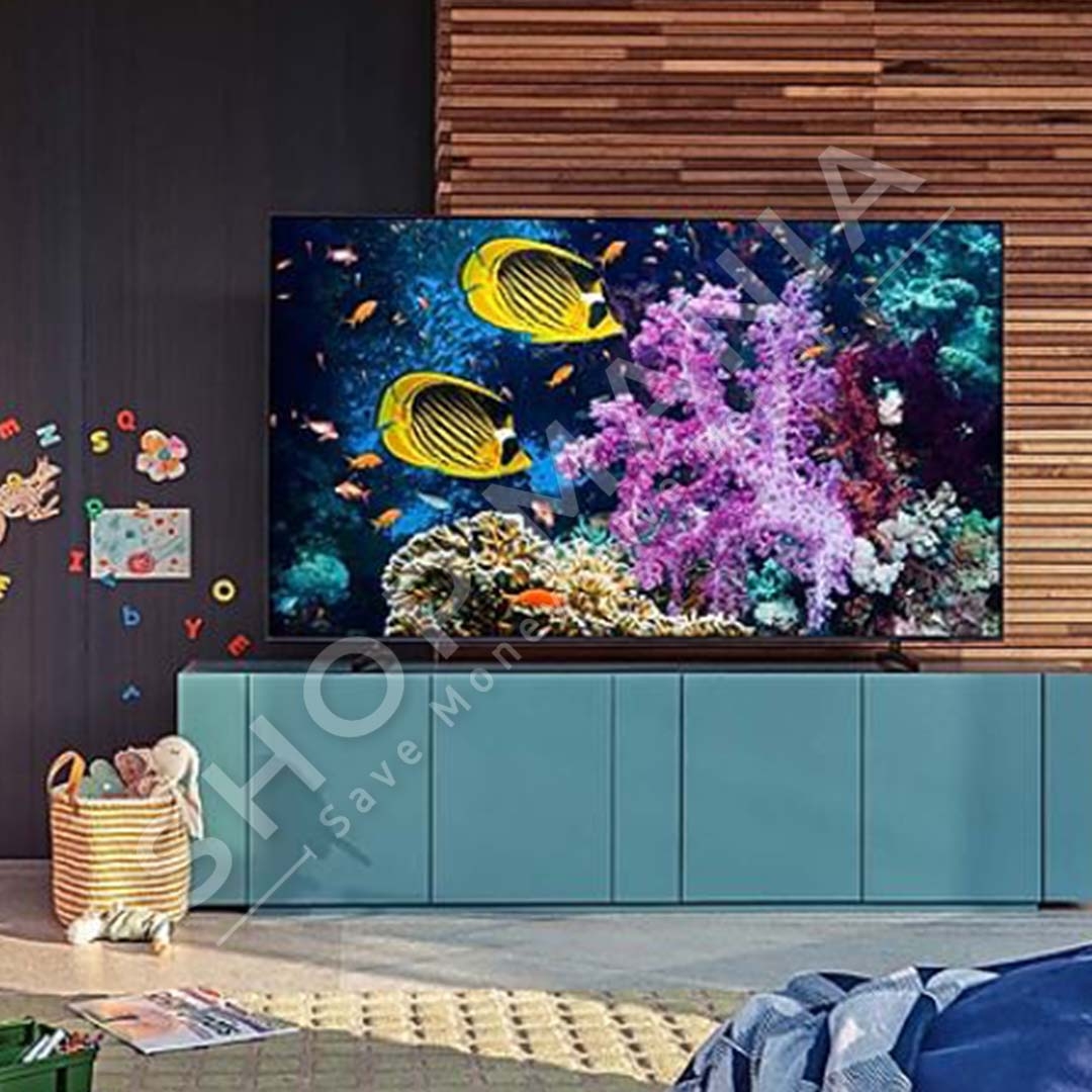 Televizor Samsung Smart QLED me ekran 55" (138 cm) dhe rezolucion 4K UHD (3840 x 2160 pixel).