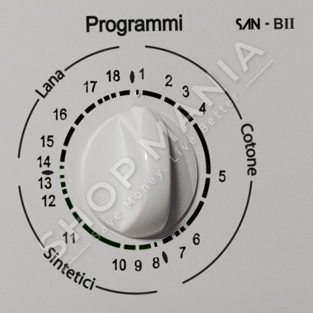 Programet: Per Rroba te Pambukta, pre-larje 90°, 90°, 60°, Eco, Shpelarje, Centrifuge, Proces per Shtimin e Aromatikut, Sintetike, per Rroba te Leshta, per Rroba Sintetike, per Larje me Dore, Shkarkim Uji