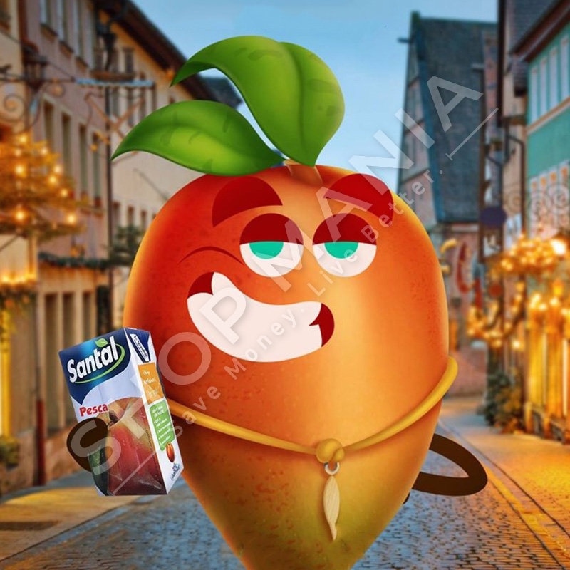 Lengu i frutave Santal eshte nje pije me baze pjeshke, pa ngjyrues ose konservante.
