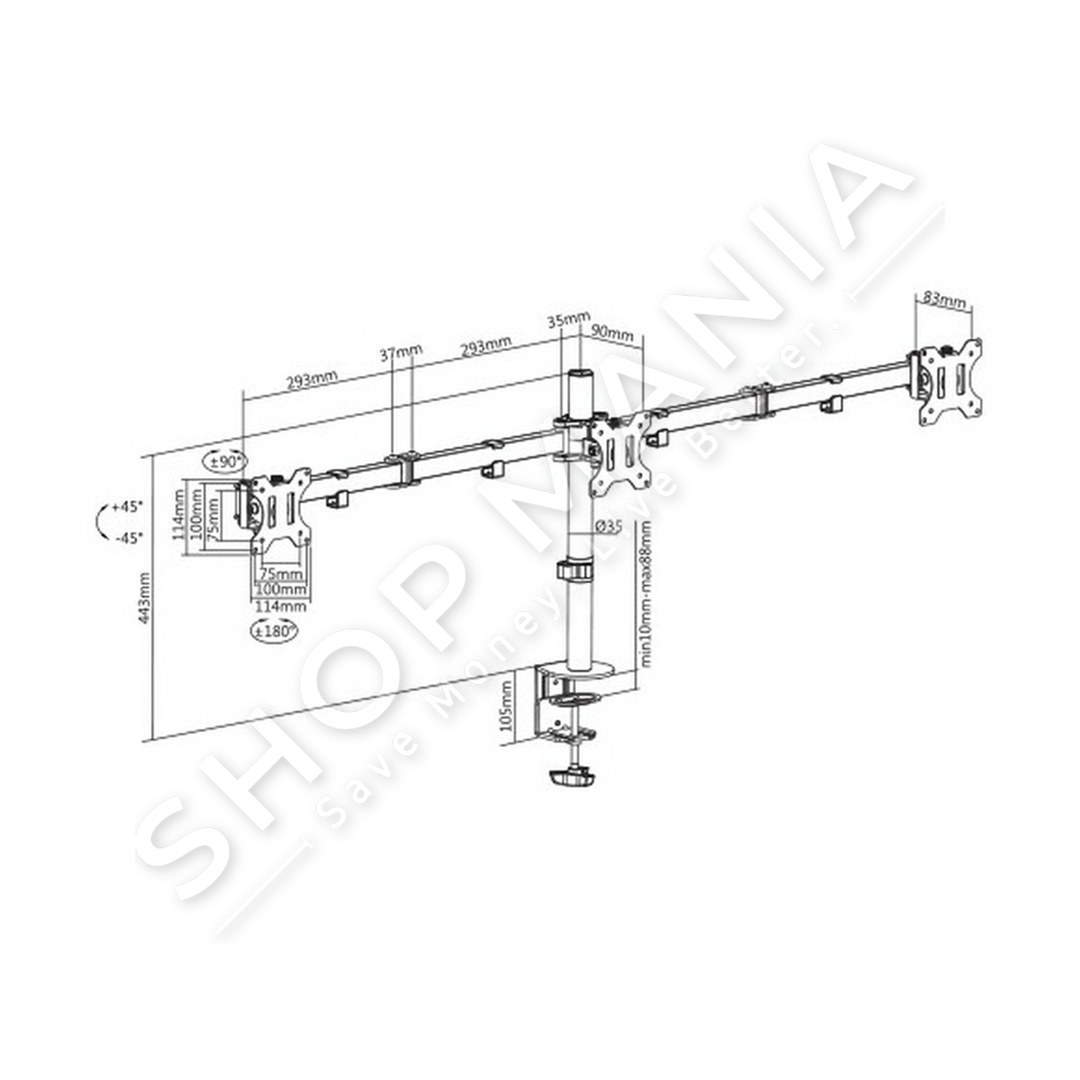 | RROTULLIM HORIZONTAL | +90°/ -90° |