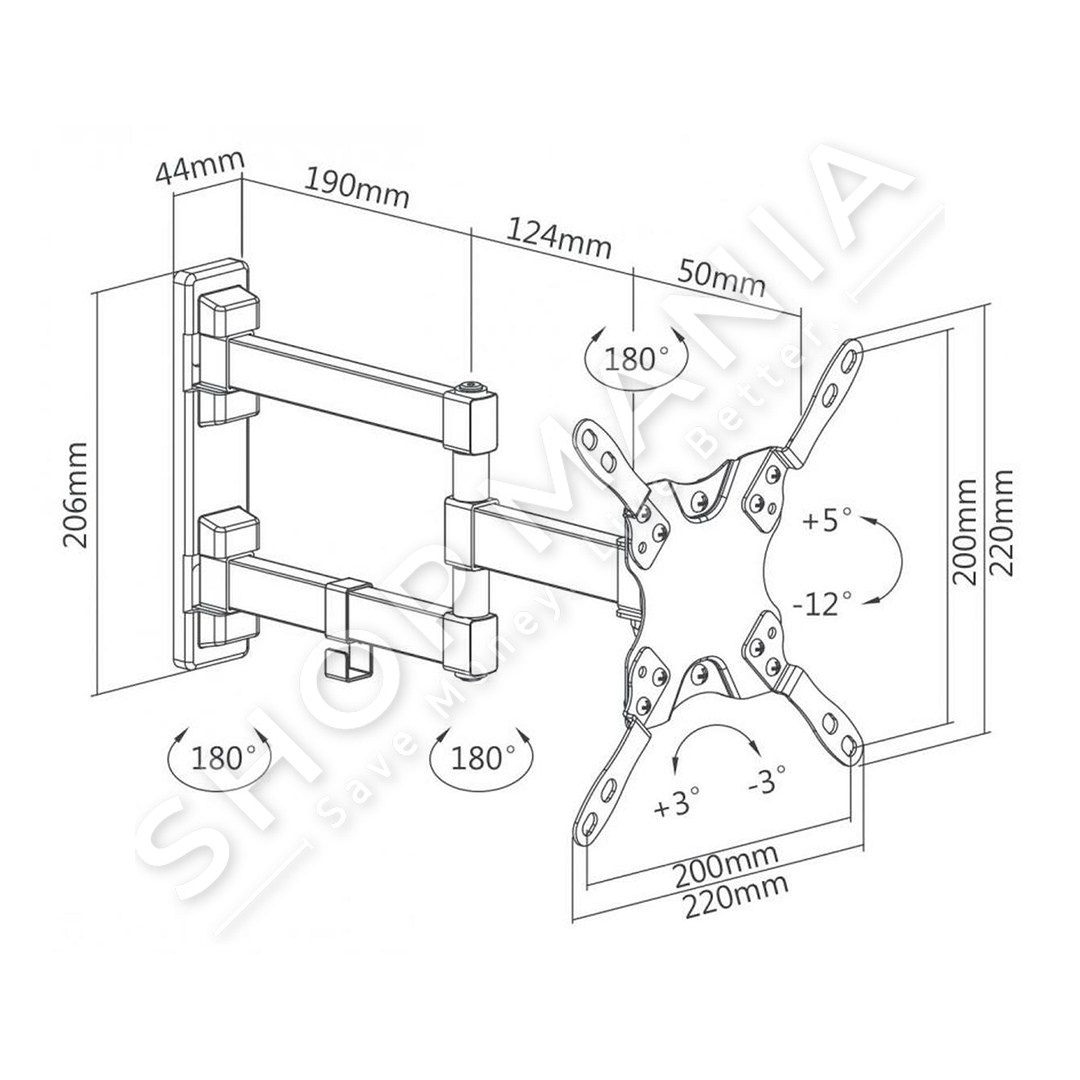 | RROTULLIM HORIZONTAL | 180° + 180° + 180° |