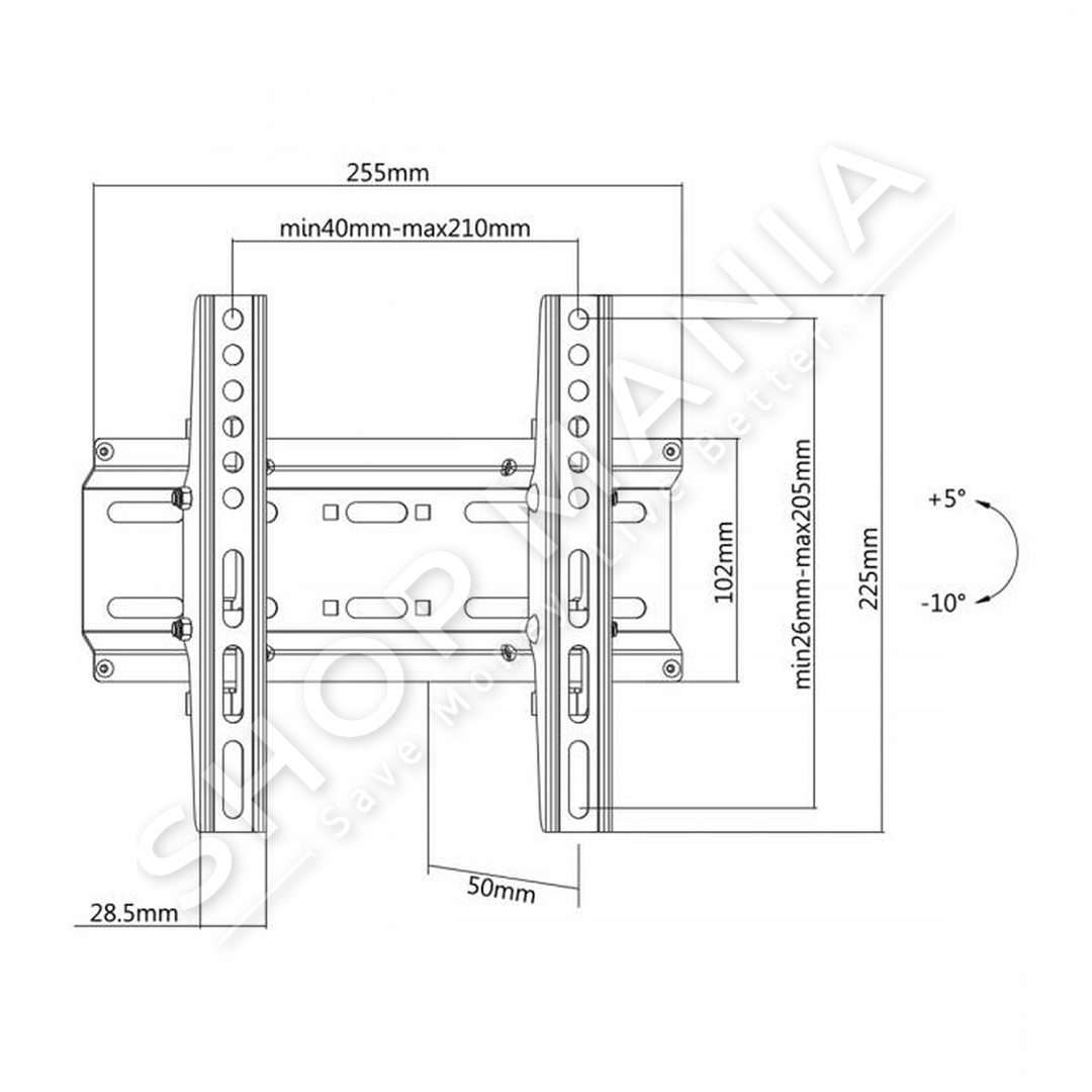 | RROTULLIMI VERTIKAL | +5° / -10° |