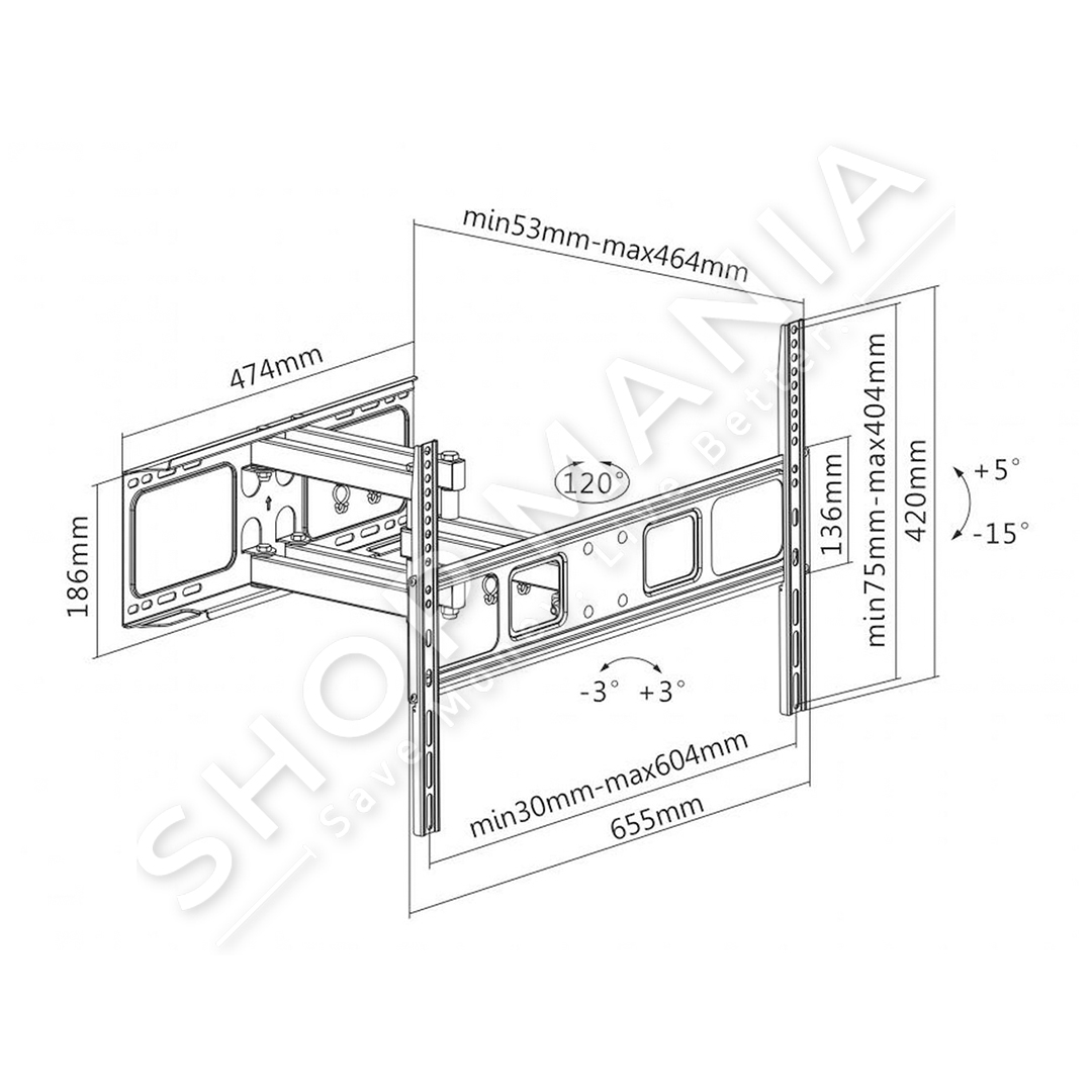 | DISTANCA NGA MURI | 53 - 464 MM |