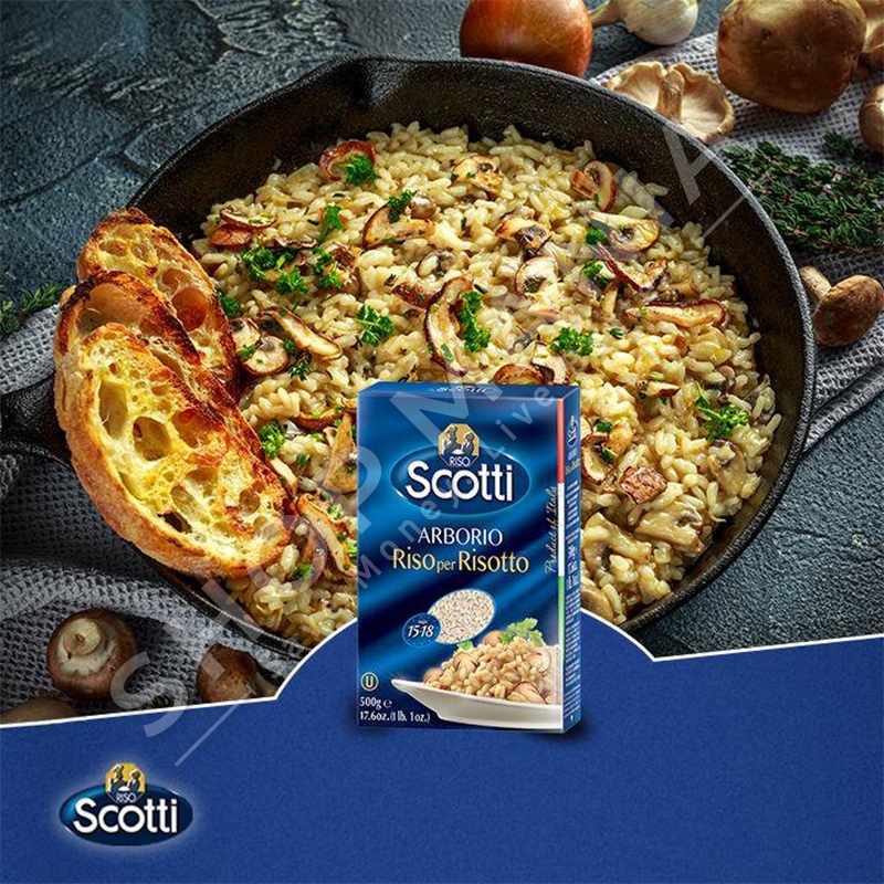 Riso Scotti Arborio produkti NR:1 me I vleresuari si produkt Italian dhe mbreti per nje rizotto perfekte.