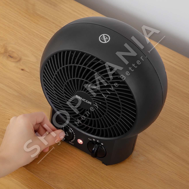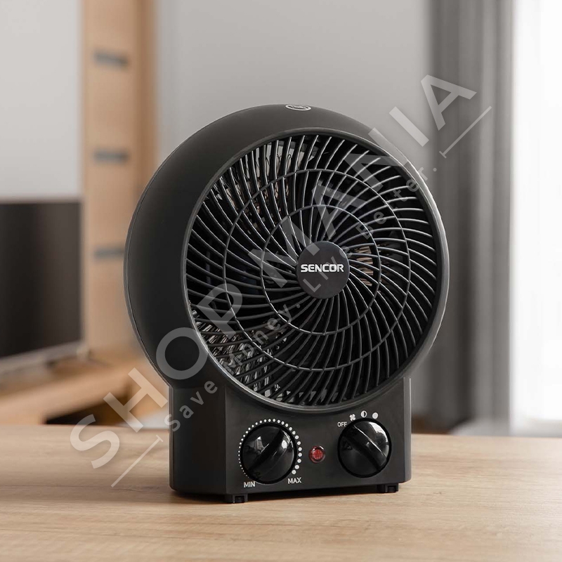 Ngrohes me fryrje nga Sencor, modeli SFH7021BK me 2 nivele ngrohje 1200 dhe 2000 W dhe termostat te kontrollueshem.