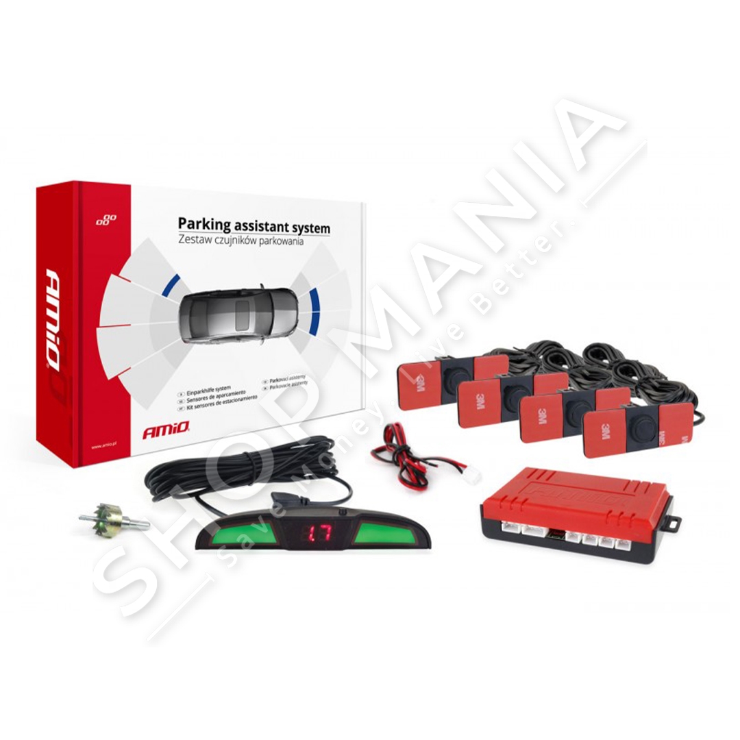 Pajisja kontrolluese: Sistemi i sensorëve parkimi AMiO AM-02285 përfshin një pajisje kontrolluese që vendoset në hapësirën e kabinës së shoferit. Kjo pajisje kontrolluese ka një ekran që tregon distancën nga objekti dhe shoqëruar me sinjale alarmi zanore.