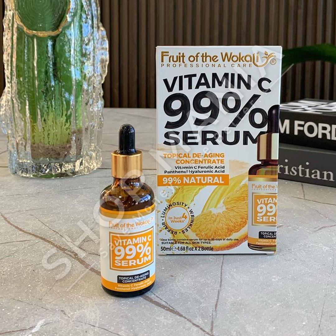 Serum fytyre me 99% vitaminë C për njollat, rrathët e zinj, linjat e holla dhe kundër rrudhave.