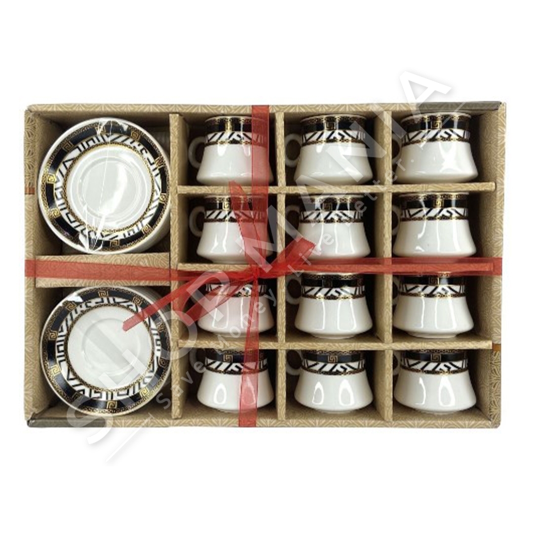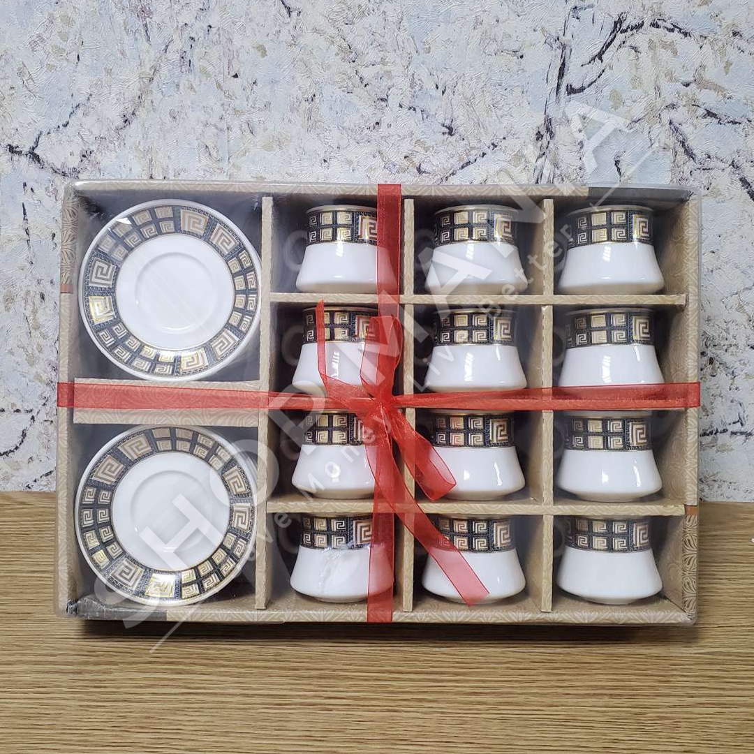 Përshkrimi:Set 12 cope filxhan kafeje prej porcelani se bashku me pjatat perkatese.