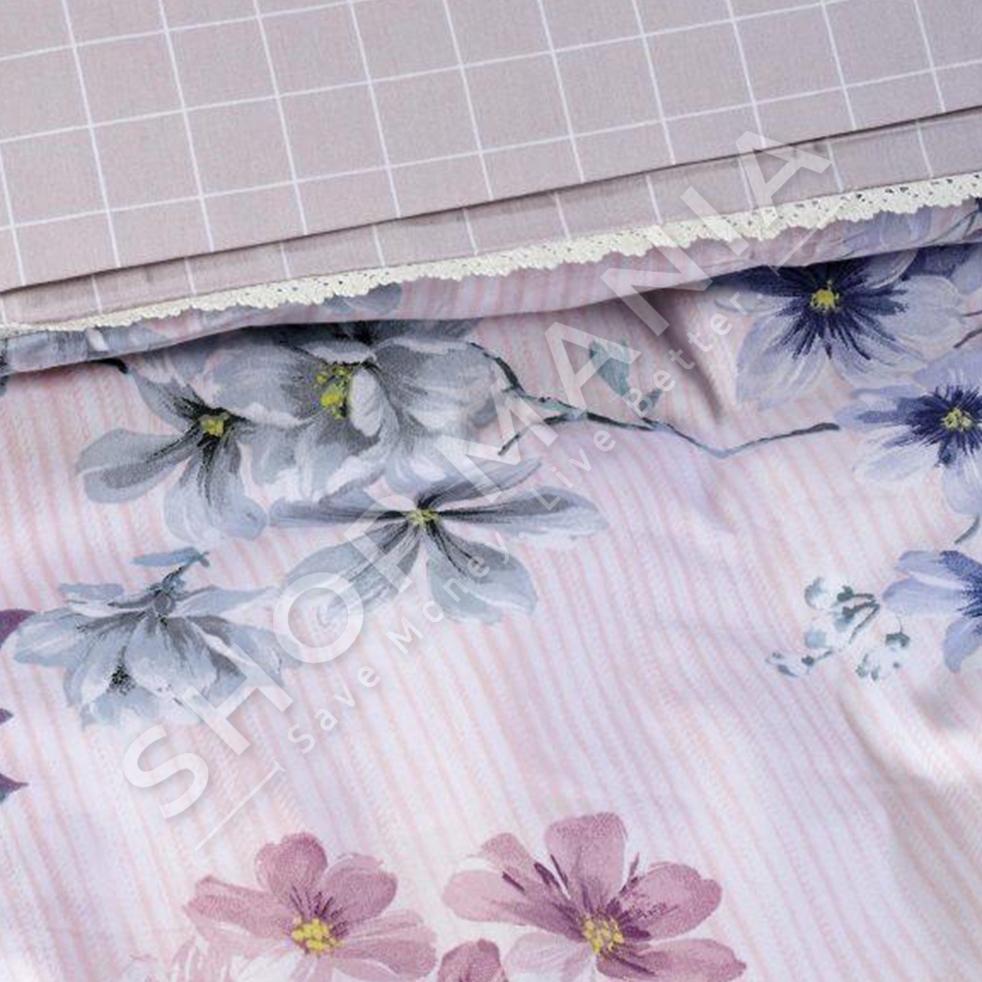 Set carcafi dopio, i cili perbehet nga 2 flete carcafi me permase 240x260 dhe 2 kellef jasteku me bordure me permase 52x75+5cm.