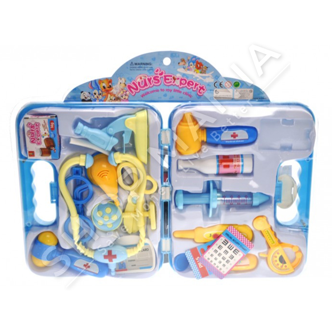 Seti perbehet nga pajisje te ndryshme doktorash si: gjilpera, stetoskopi, gersheret, ilacet, termometer, syzet e doktorit, valixhen e ndihmes se shpejte etj.