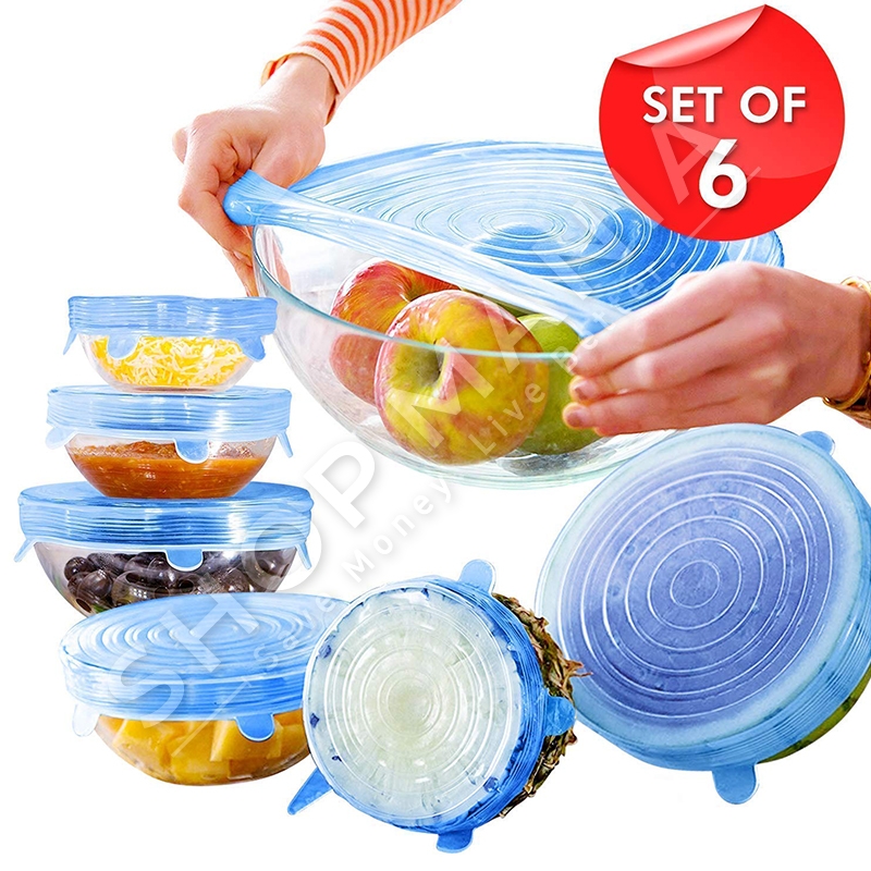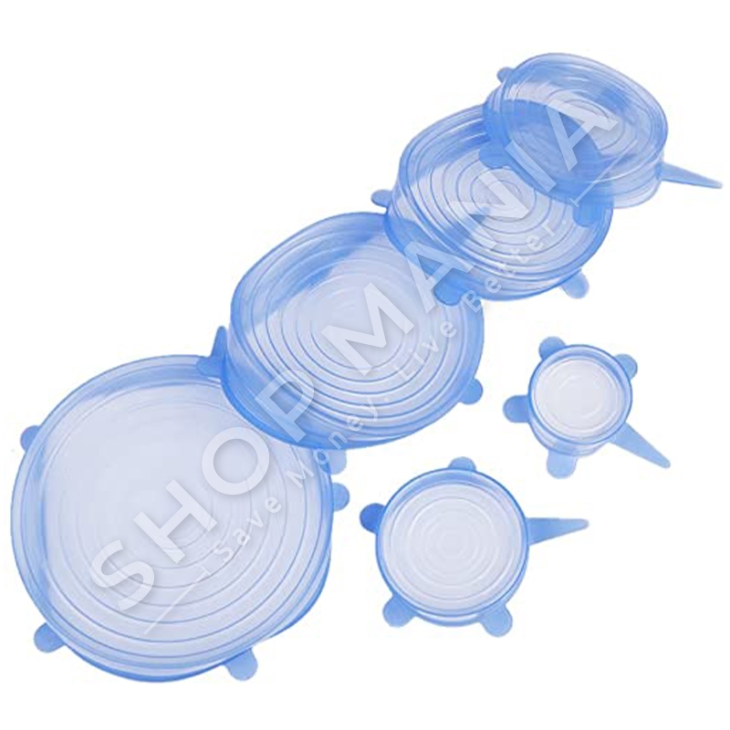 Set me 6 kapake prej silikoni te pershtatshme per gota, tenxhere, tasa dhe tigane.