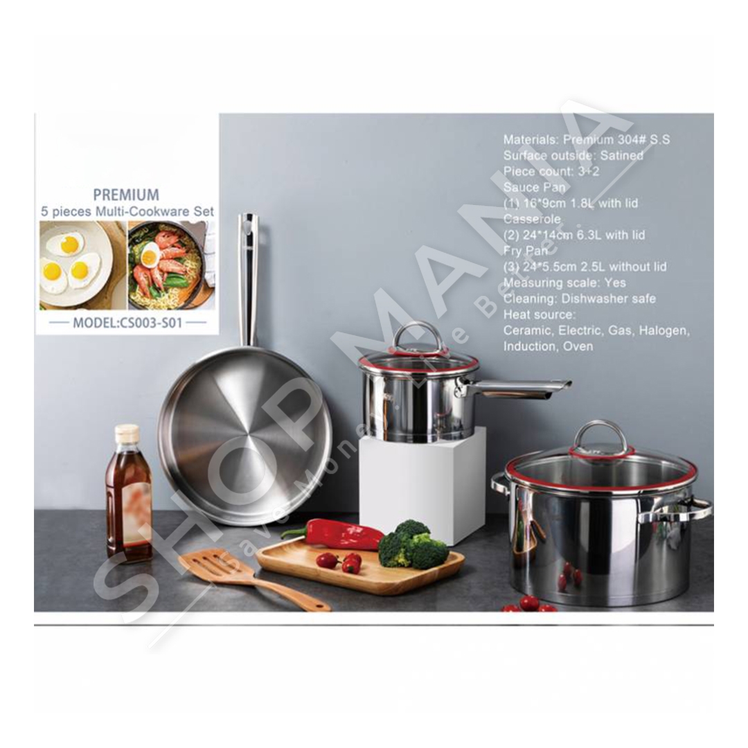 Set tenxhere/tigan prej 5 cope i jep kuzhines tuaj nje pamje te kompletuar. Sepse ne ofrojme me te miren per amvisat. I perbere nga 2 tenxhere te thella me kapak dhe 1 tigan pa kapak.