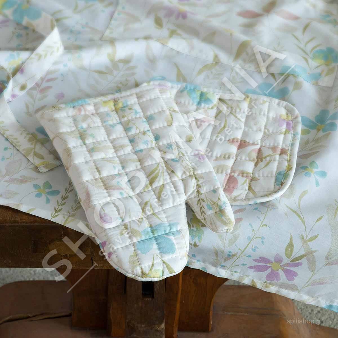 Set kuzhine i perbere nga kapeset e kuzhines, dorezat e kuzhines dhe perparesja e kuzhines. Te gjitha pjeset e setit jane prej pambuku shume i bute, ndersa pelhura e tyre eshte shume absorbuese dhe thahet shpejt. Te pershtatshme per perdorim te perditshem ne kuzhine. Fale perberjes se tyre te pambukut te ngjyrosur te fijeve natyrale, kane qendrueshmeri te madhe dhe ruajne ngjyren dhe formen e tyre edhe pas shume larjeve, pa kerkuar kujdes te veçante.