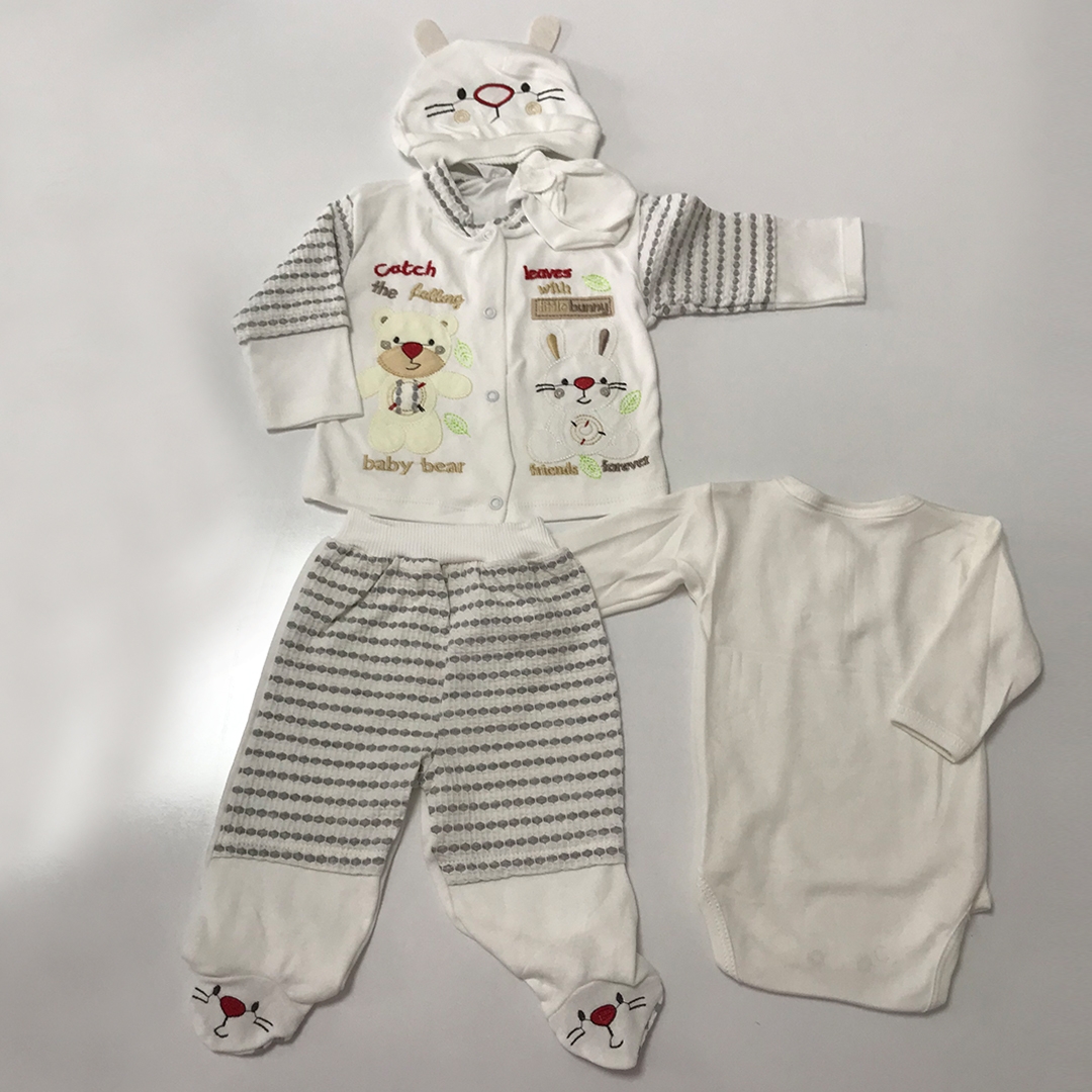 Set me bluze me butona, tuta me corape, trupore me menge te gjata, kapuc dhe dorashka.