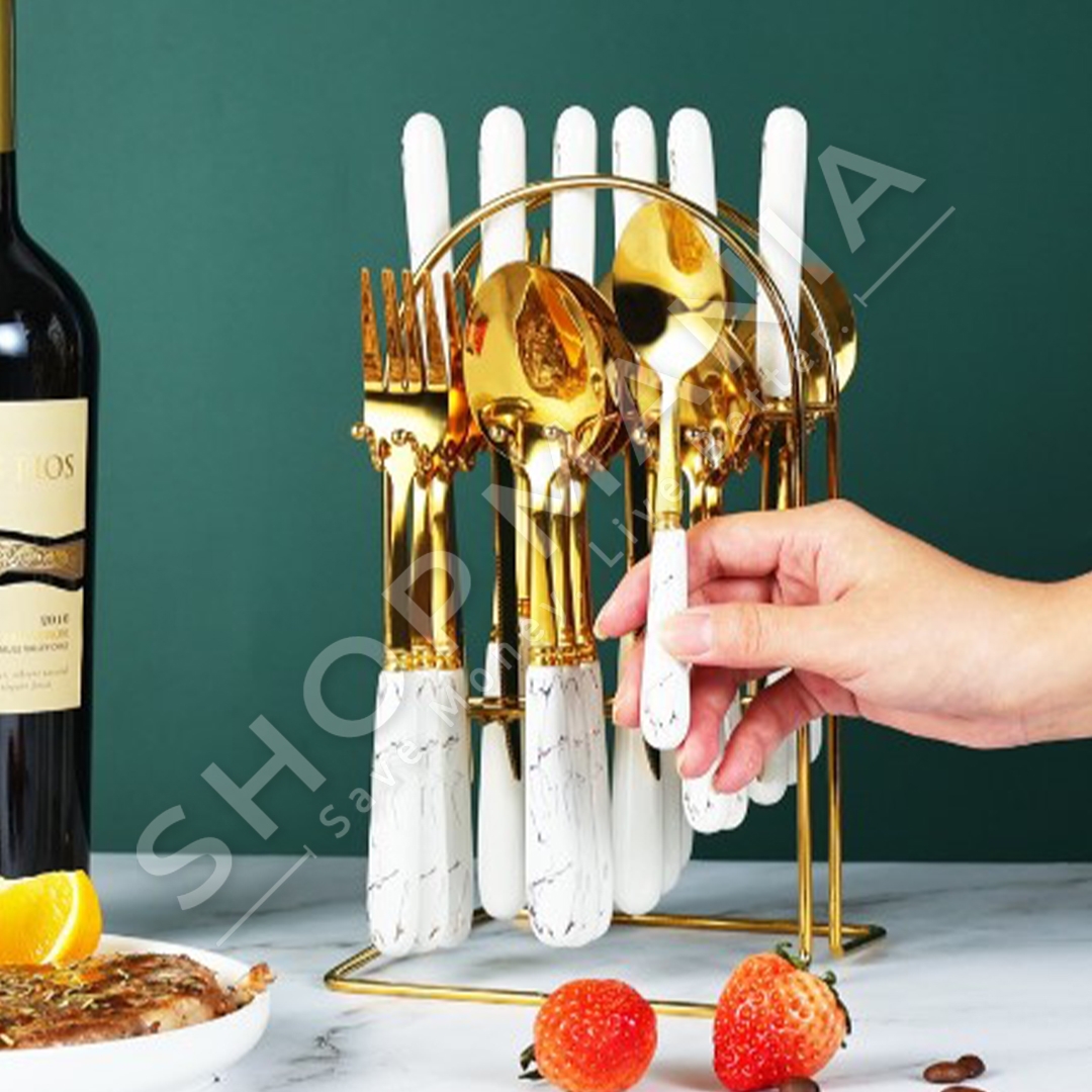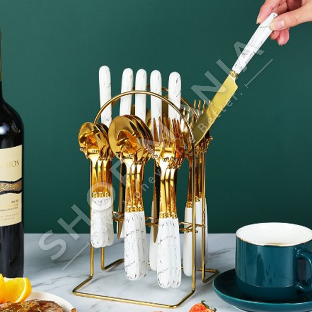 Ne material celik inoksi me cilesi te larte dhe lustrim ne ngjyre gold.