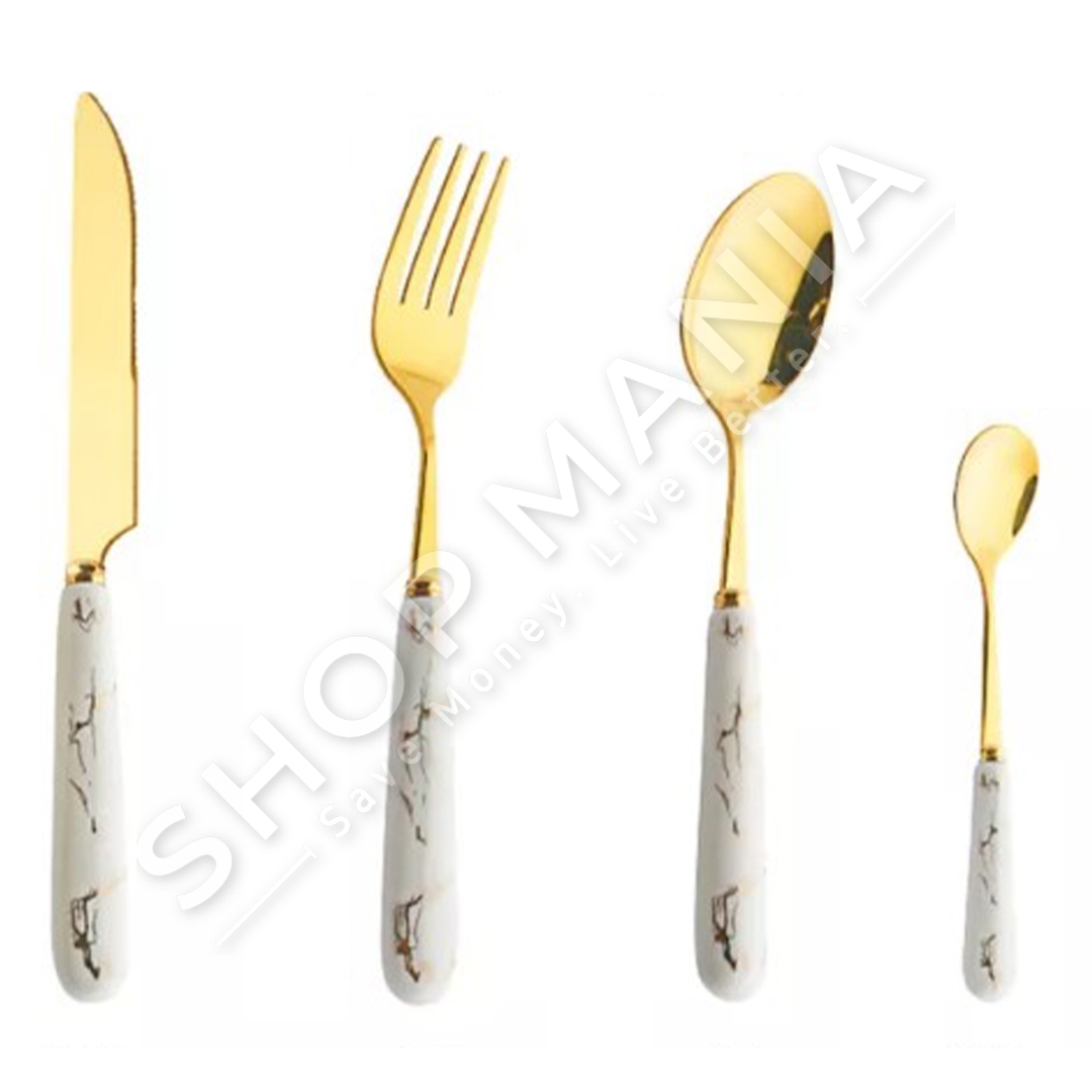 Seti perfshin 6 pirunj, 6 luge dhe 6 luge caji.